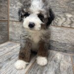 SMBLUMF8- WHOA! Stunning blue merle female! These puppies come with a 2 year health guarantee, health record listing vaccines/dewormers, registration papers, and are examined by the vet and issued a health certificate before they leave. These babies are hypoallergenic and little to no shedding. They are bred with wonderful temperaments and are doggy door trained […]