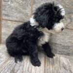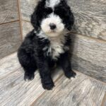 CTBLKTRIM1- adorable black tri male with a tuxedo! His copper will be more vibrant as he matures. These puppies come with a 2 year health guarantee, health record listing vaccines/dewormers, registration papers, and are examined by the vet and issued a health certificate before they leave. These babies are hypoallergenic and little to no shedding. They are bred with wonderful temperaments and are doggy door trained to potty outside so house training is a breeze! My 4 yr old son “helps” and plays with the puppies so they are exposed to children. If you are wanting one of these pups we sometimes make a delivery route to STL or 2 hours from the house depending on customer locations and amount of pups heading that direction so we can set up a meeting route with a small fee if that ends up working for everyone. We offer airline shipping or flight nanny just need to see on quotes and shipping time frame. We are a small family business as well as a state licensed and inspected kennel. Thank you so much for supporting us! Welcome to the Double R Family!