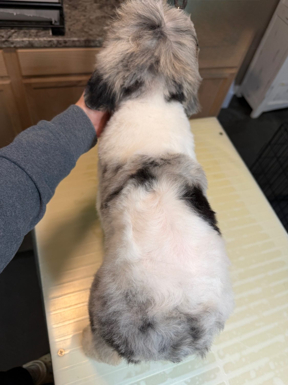 CTBLUMPM3- blue merle parti male with copper! These puppies come with a 2 year health guarantee, health record listing vaccines/dewormers, registration papers, and are examined by the vet and issued a health certificate before they leave. These babies are hypoallergenic and little to no shedding. They are bred with wonderful temperaments and are doggy door trained to potty outside so house training is a breeze! My 4 yr old son “helps” and plays with the puppies so they are exposed to children. If you are wanting one of these pups we sometimes make a delivery route to STL or 2 hours from the house depending on customer locations and amount of pups heading that direction so we can set up a meeting route with a small fee if that ends up working for everyone. We offer airline shipping or flight nanny just need to see on quotes and shipping time frame. We are a small family business as well as a state licensed and inspected kennel. Thank you so much for supporting us! Welcome to the Double R Family!