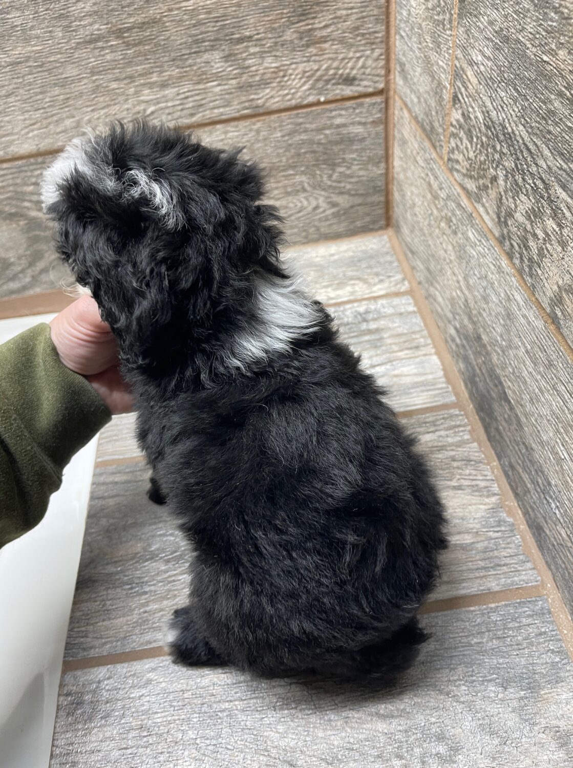 CTBLKTRIM1- adorable black tri male with a tuxedo! His copper will be more vibrant as he matures. These puppies come with a 2 year health guarantee, health record listing vaccines/dewormers, registration papers, and are examined by the vet and issued a health certificate before they leave. These babies are hypoallergenic and little to no shedding. They are bred with wonderful temperaments and are doggy door trained to potty outside so house training is a breeze! My 4 yr old son “helps” and plays with the puppies so they are exposed to children. If you are wanting one of these pups we sometimes make a delivery route to STL or 2 hours from the house depending on customer locations and amount of pups heading that direction so we can set up a meeting route with a small fee if that ends up working for everyone. We offer airline shipping or flight nanny just need to see on quotes and shipping time frame. We are a small family business as well as a state licensed and inspected kennel. Thank you so much for supporting us! Welcome to the Double R Family!
