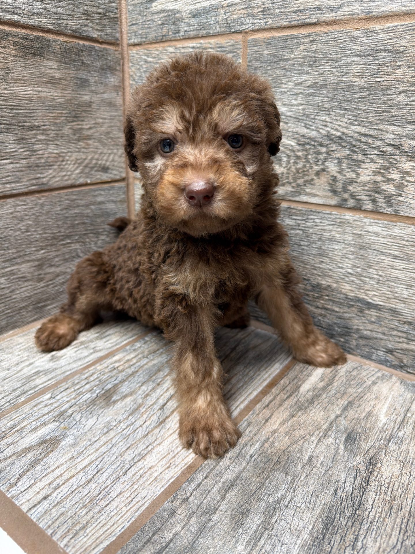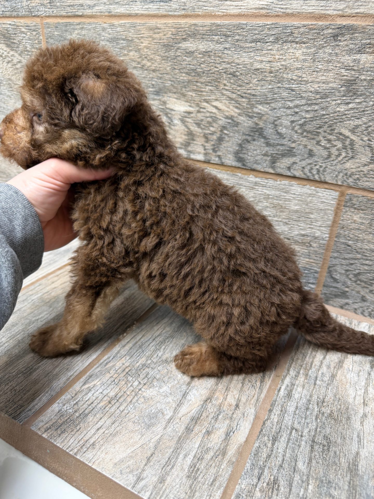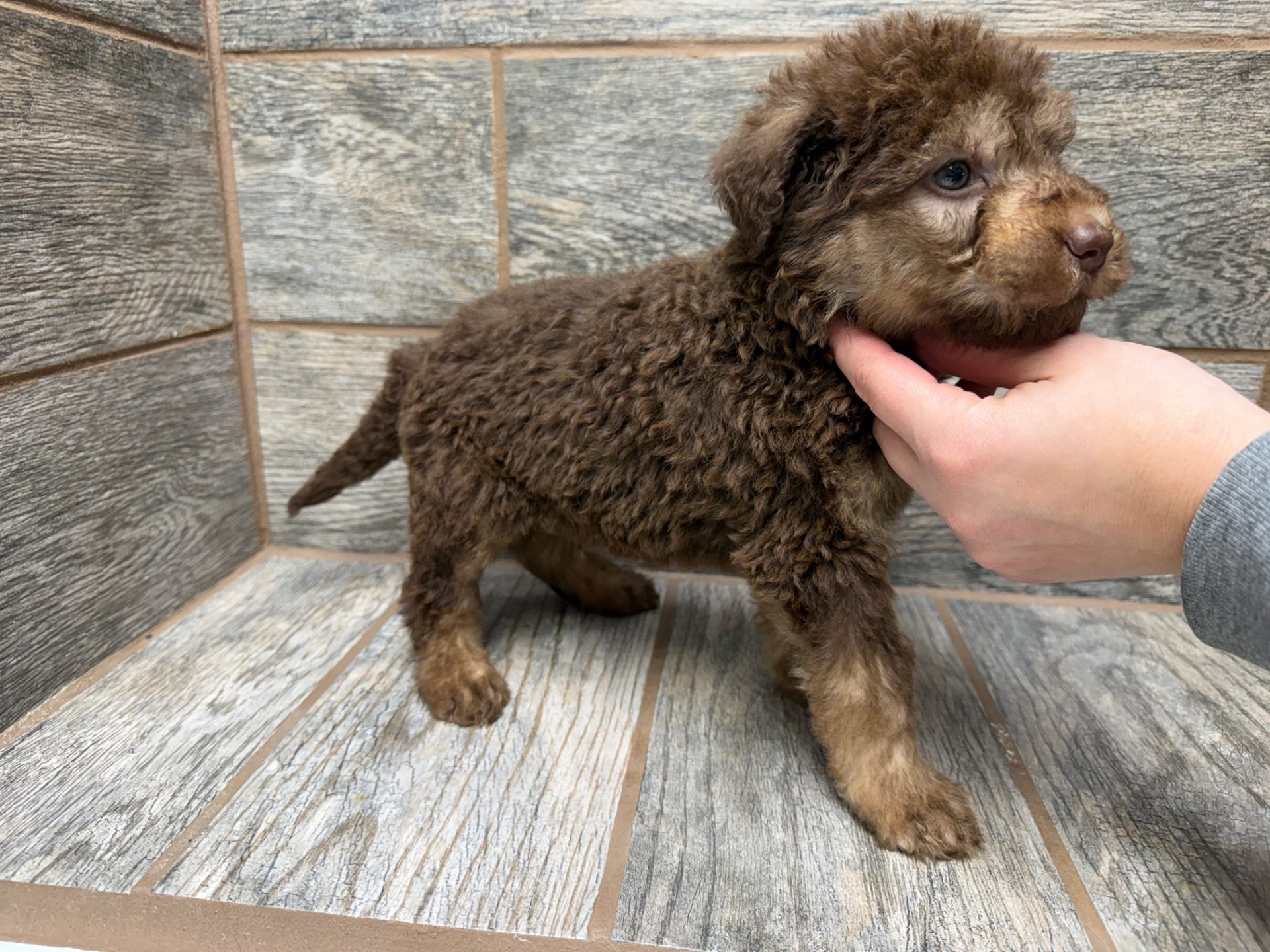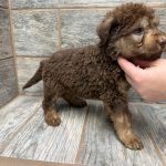 CBCHTNM5- sweet chocolate and tan male! Check out all of that copper! These puppies come with a 2 year health guarantee, health record listing vaccines/dewormers, registration papers, and are examined by the vet and issued a health certificate before they leave. These babies are hypoallergenic and little to no shedding. They are bred with wonderful temperaments and are doggy door trained to potty outside so house training is a breeze! My 4 yr old son “helps” and plays with the puppies so they are exposed to children. If you are wanting one of these pups we sometimes make a delivery route to STL or 2 hours from the house depending on customer locations and amount of pups heading that direction so we can set up a meeting route with a small fee if that ends up working for everyone. We offer airline shipping or flight nanny just need to see on quotes and shipping time frame. We are a small family business as well as a state licensed and inspected kennel. Thank you so much for supporting us! Welcome to the Double R Family!