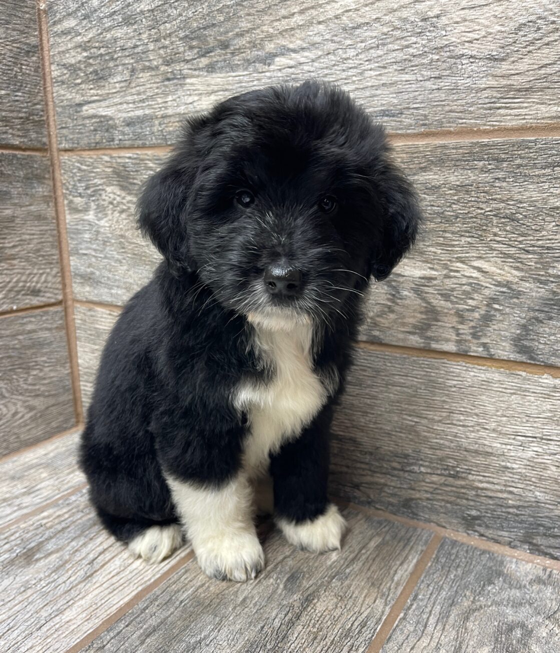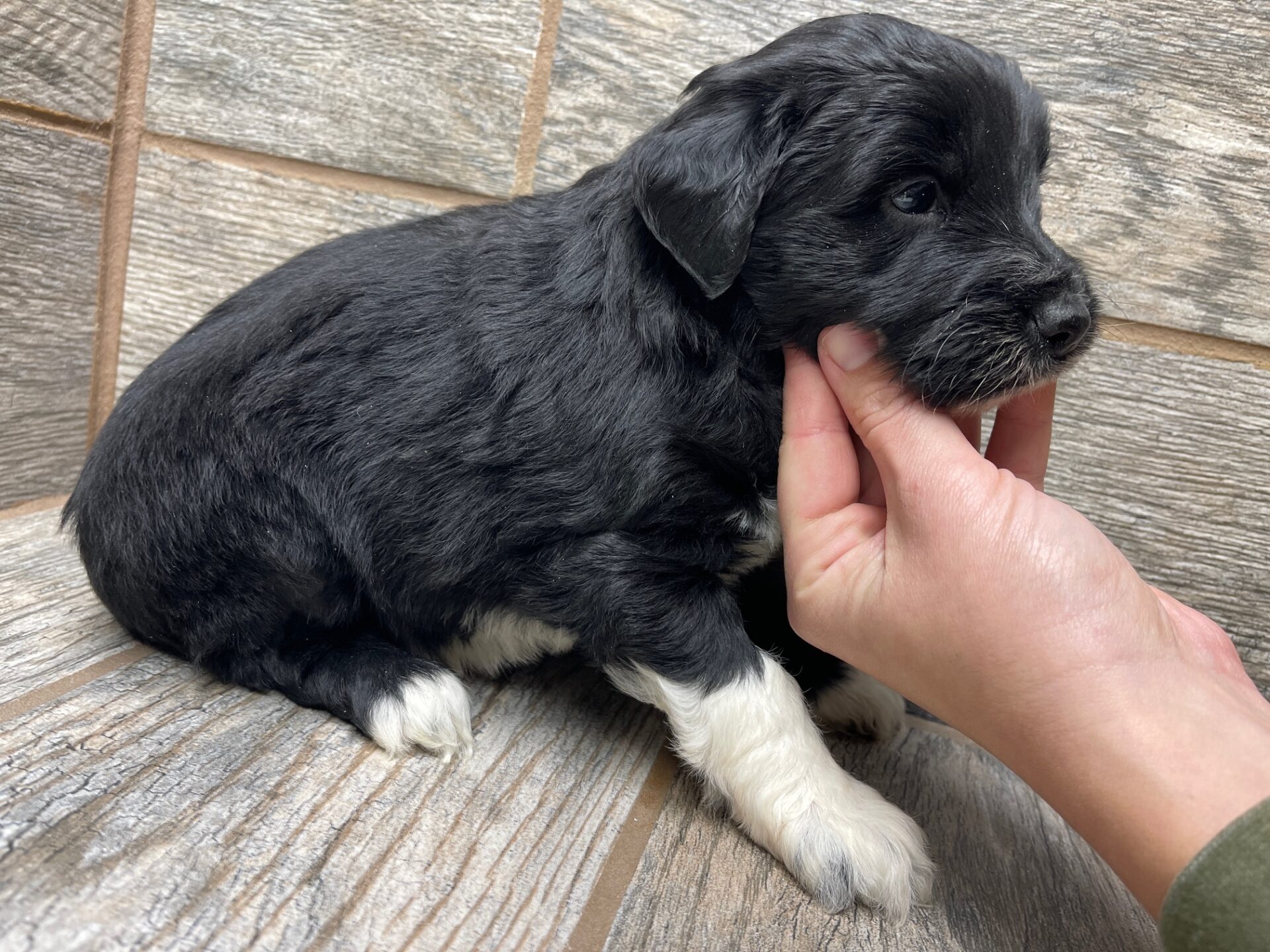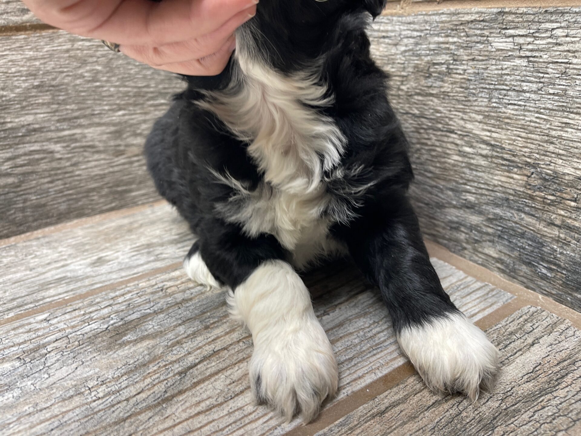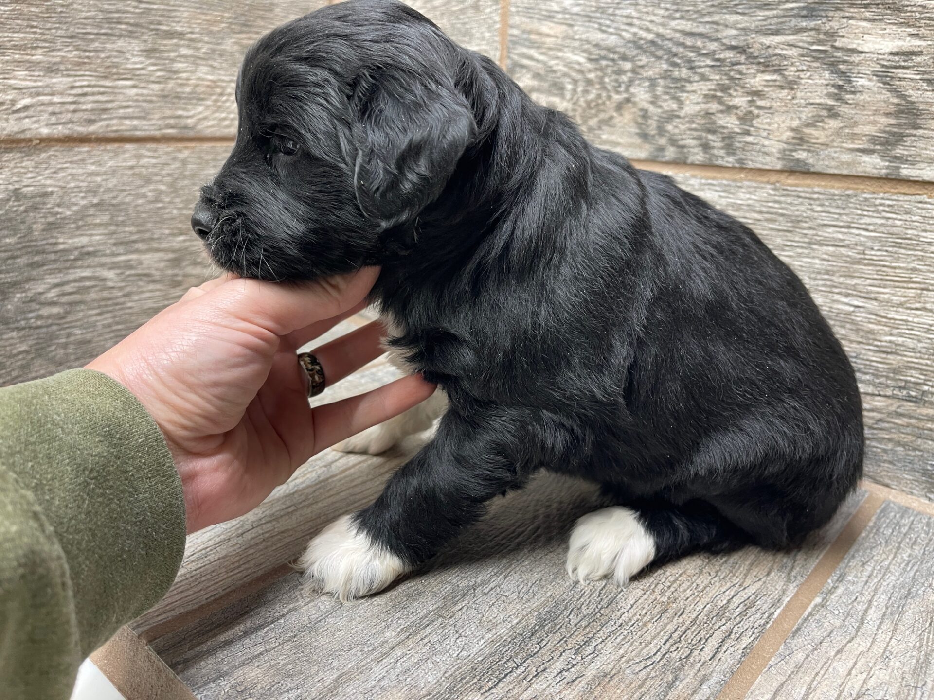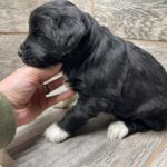 IPBLKWTUXF2- sweet black and white tuxedo female! These puppies come with a 2 year health guarantee, health record listing vaccines/dewormers, registration papers, and are examined by the vet and issued a health certificate before they leave. These babies are hypoallergenic and little to no shedding. They are bred with wonderful temperaments and are doggy door trained to potty outside so house training is a breeze! My 4 yr old son “helps” and plays with the puppies so they are exposed to children. If you are wanting one of these pups we sometimes make a delivery route to STL or 2 hours from the house depending on customer locations and amount of pups heading that direction so we can set up a meeting route with a small fee if that ends up working for everyone. We offer airline shipping or flight nanny just need to see on quotes and shipping time frame. We are a small family business as well as a state licensed and inspected kennel. Thank you so much for supporting us! Welcome to the Double R Family!