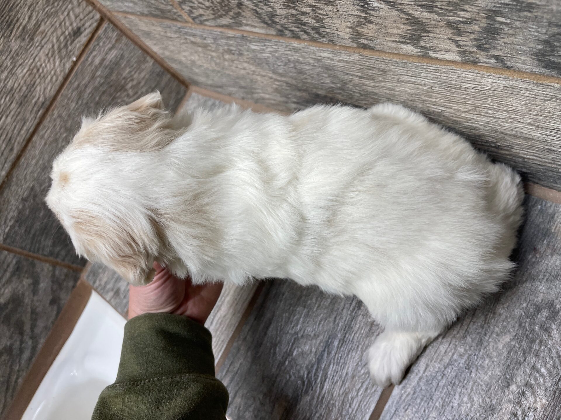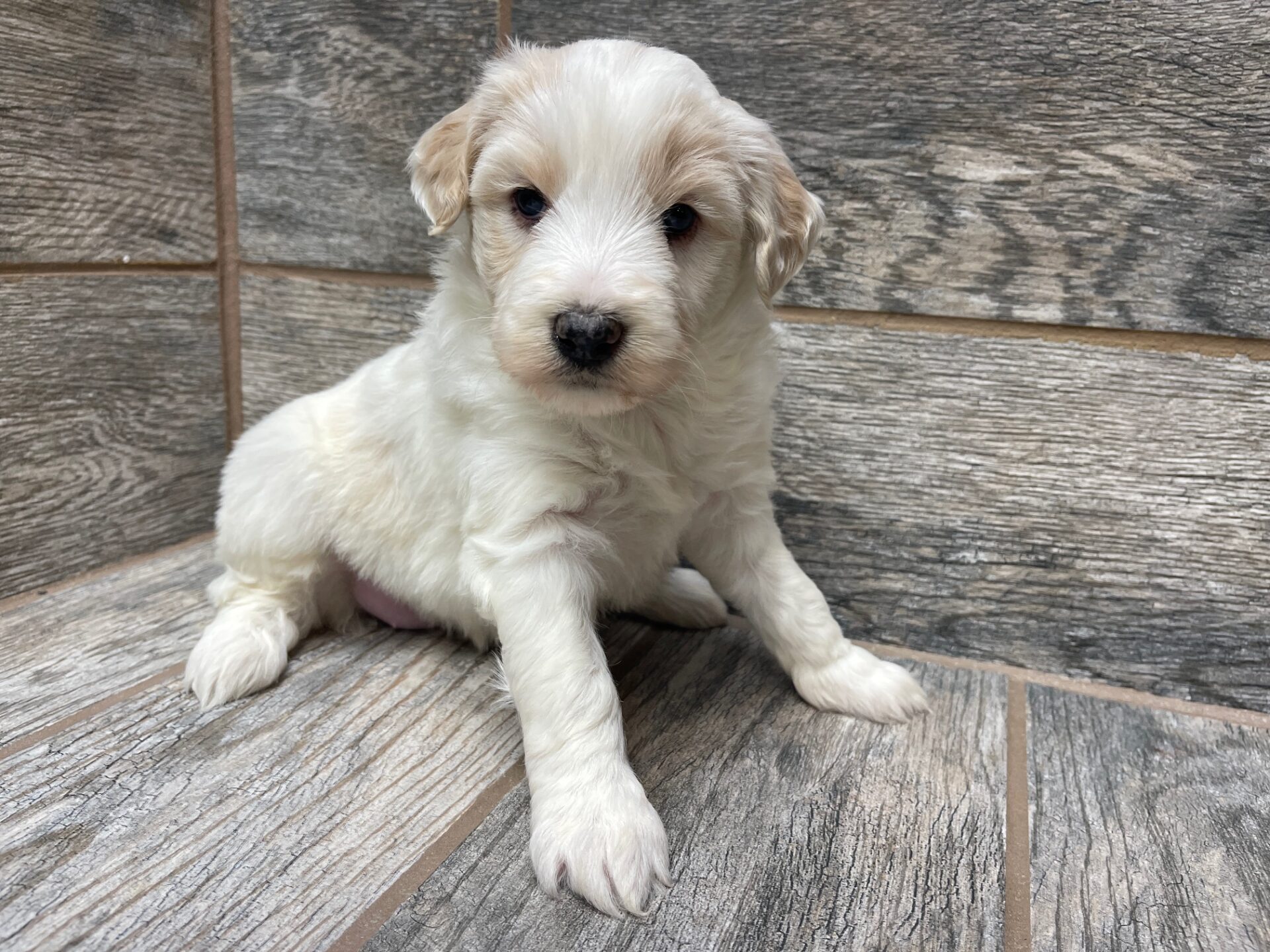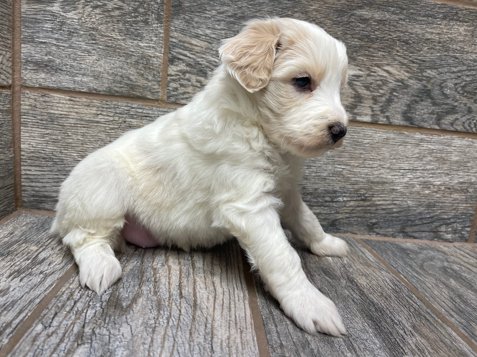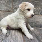 IPCRMPF1- adorable cream and white parti female! These puppies come with a 2 year health guarantee, health record listing vaccines/dewormers, registration papers, and are examined by the vet and issued a health certificate before they leave. These babies are hypoallergenic and little to no shedding. They are bred with wonderful temperaments and are doggy door trained to potty outside so house training is a breeze! My 4 yr old son “helps” and plays with the puppies so they are exposed to children. If you are wanting one of these pups we sometimes make a delivery route to STL or 2 hours from the house depending on customer locations and amount of pups heading that direction so we can set up a meeting route with a small fee if that ends up working for everyone. We offer airline shipping or flight nanny just need to see on quotes and shipping time frame. We are a small family business as well as a state licensed and inspected kennel. Thank you so much for supporting us! Welcome to the Double R Family!