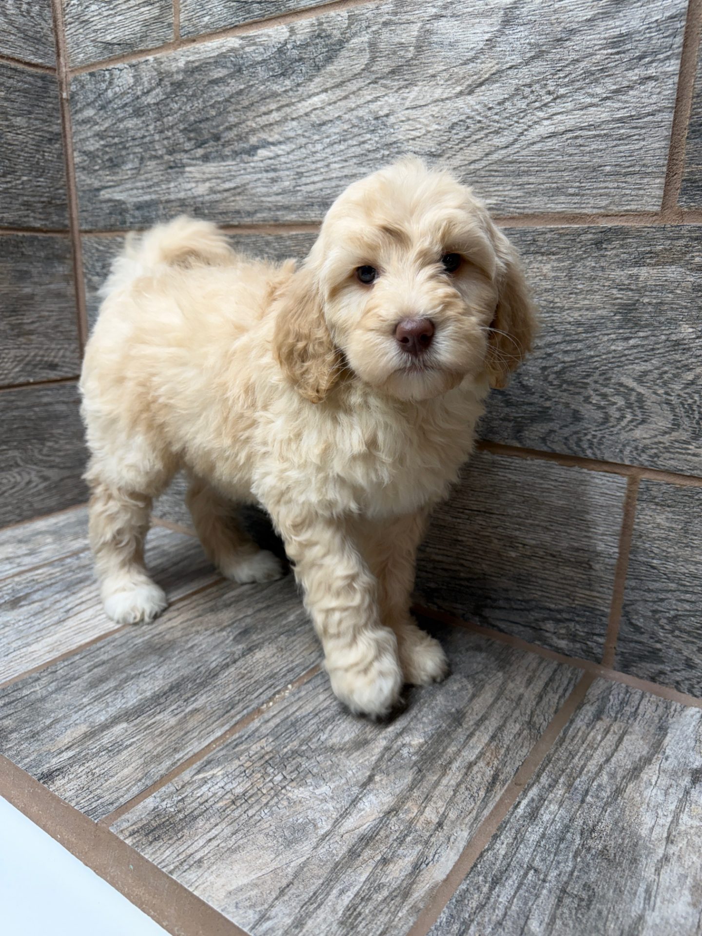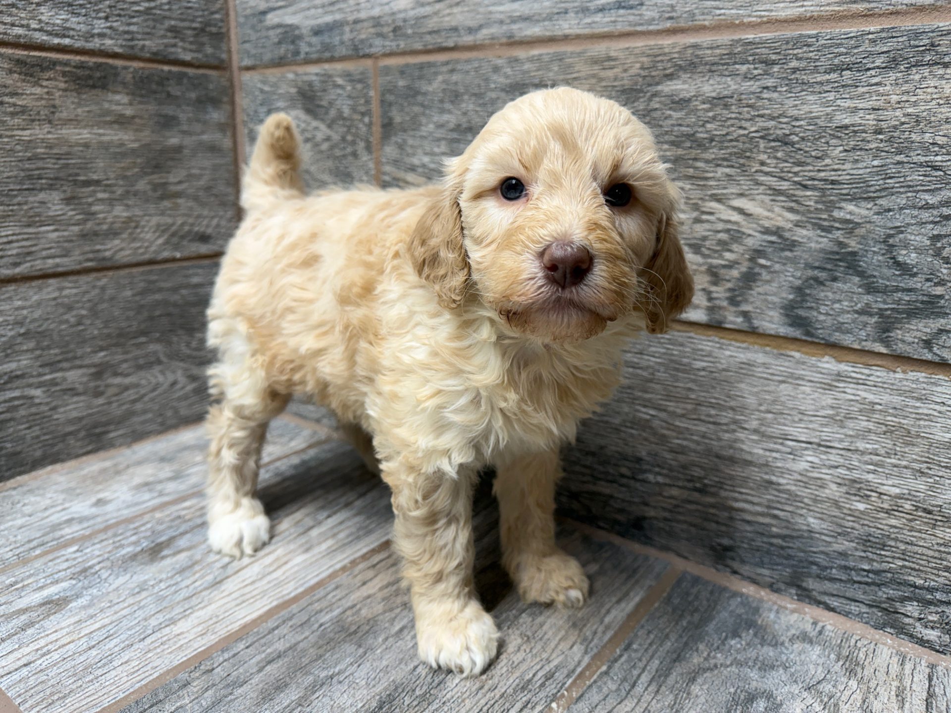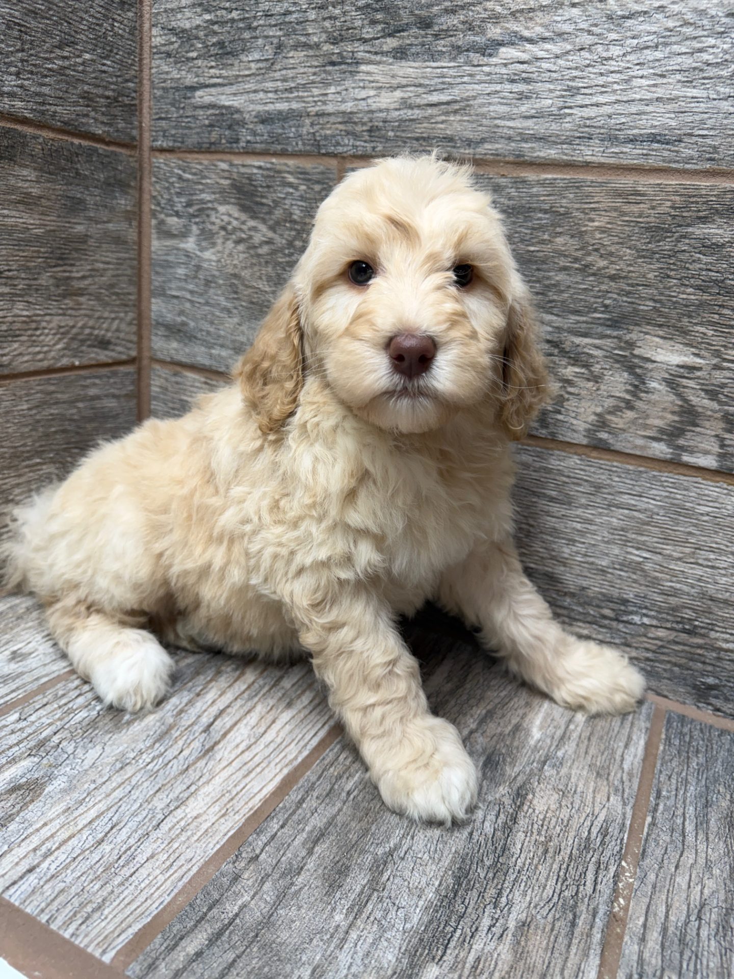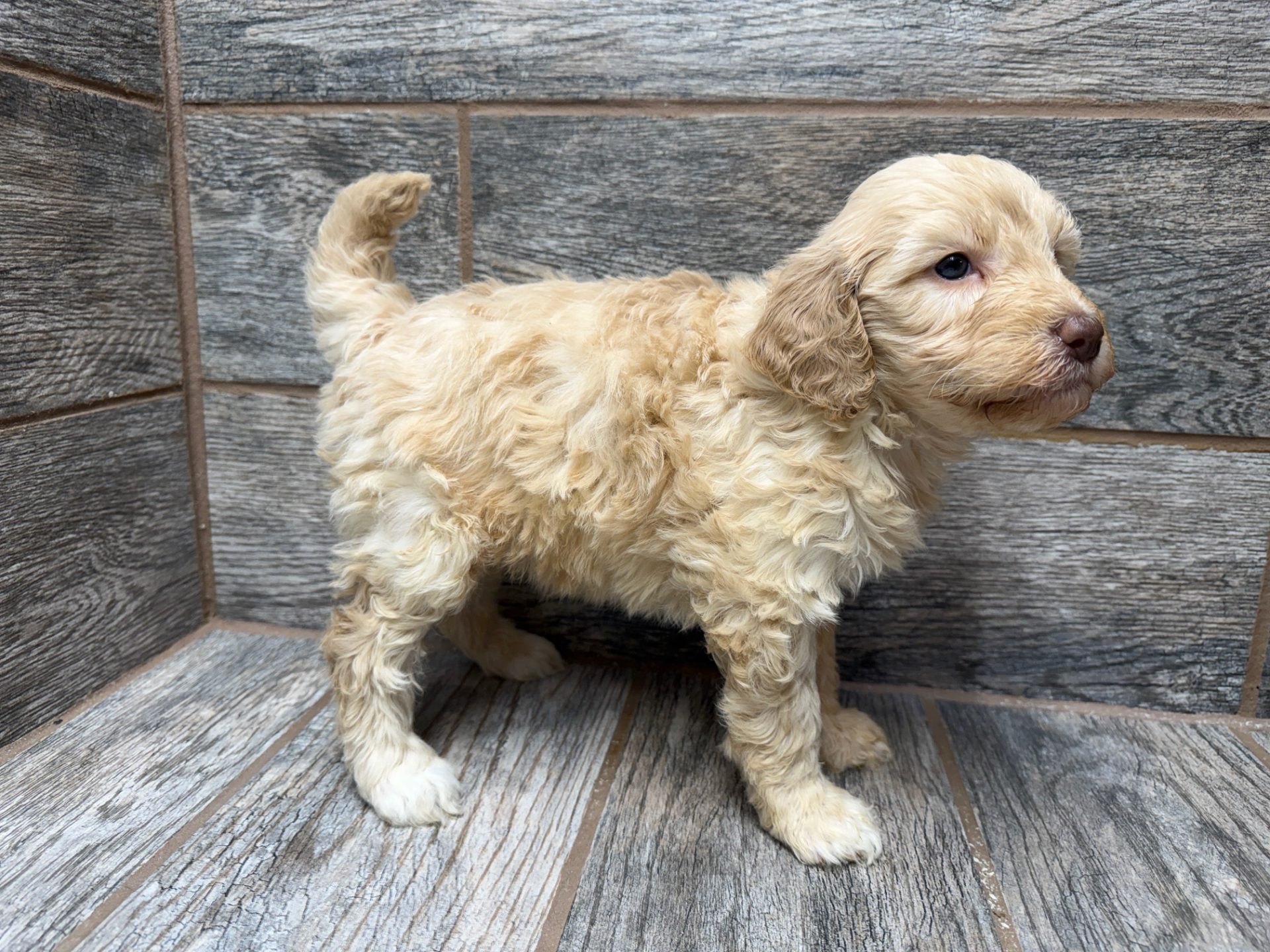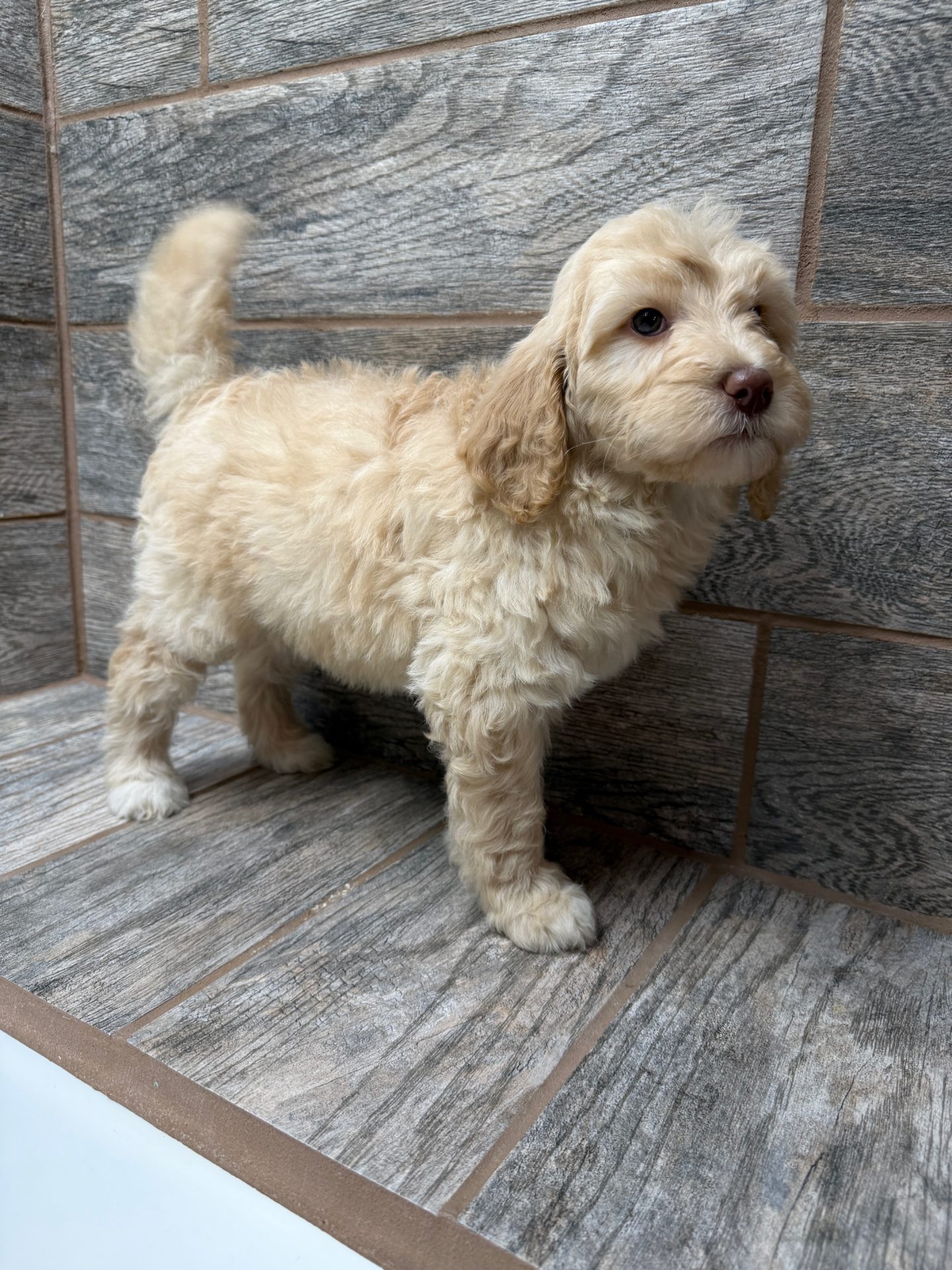 JTCRMWF2- sweet cream and white female! These puppies come with a 2 year health guarantee, health record listing vaccines/dewormers, and are examined by the vet and issued a health certificate before they leave. These babies are hypoallergenic and little to no shedding. They are bred with wonderful temperaments and are doggy door trained to potty outside so house training is a breeze! My 5 yr old son “helps” and plays with the puppies so they are exposed to children. If you are wanting one of these pups we sometimes make a delivery route to STL or 2 hours from the house depending on customer locations and amount of pups heading that direction so we can set up a meeting route with a small fee if that ends up working for everyone. We offer airline shipping or flight nanny just need to see on quotes and shipping time frame. We are a small family business as well as a state licensed and inspected kennel. Thank you so much for supporting us! Welcome to the Double R Family!