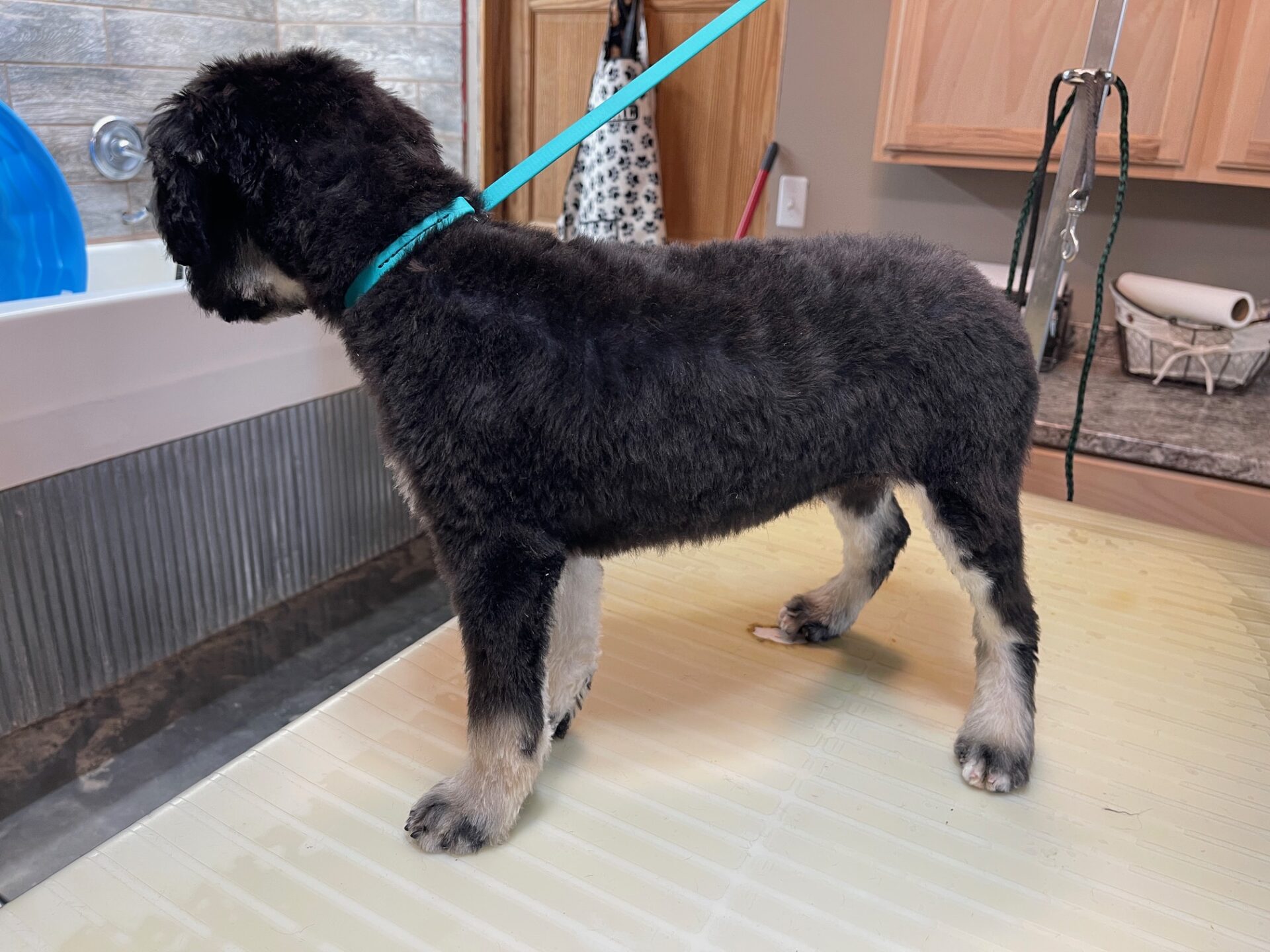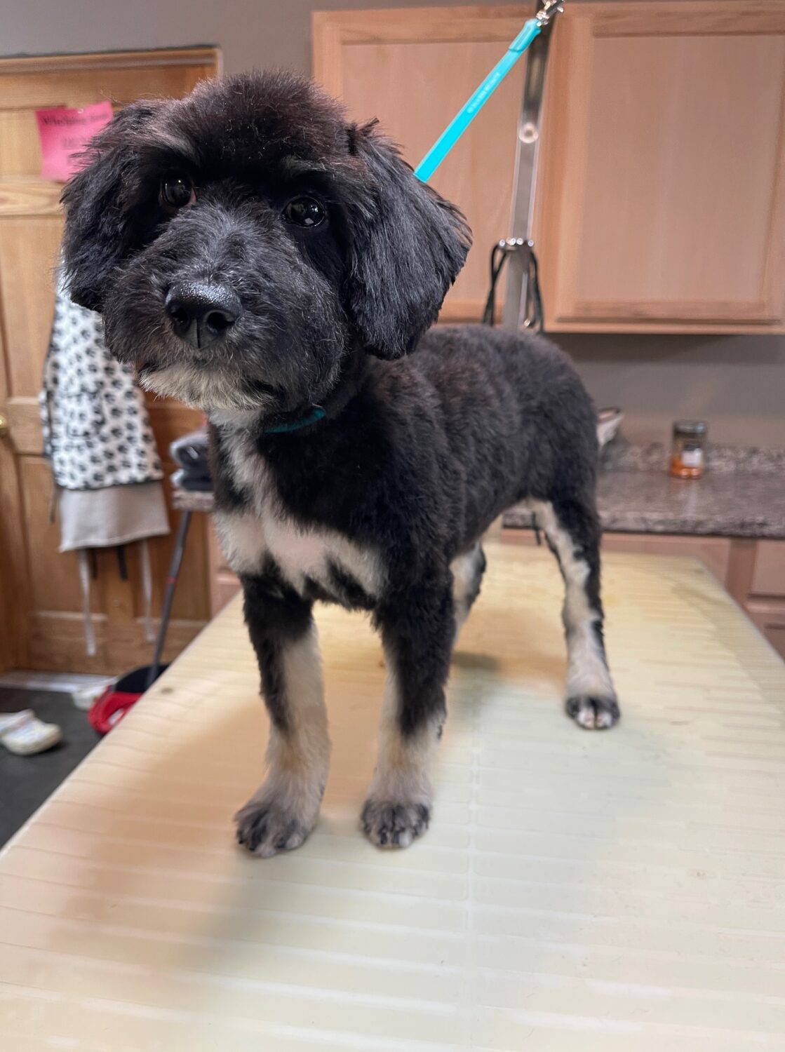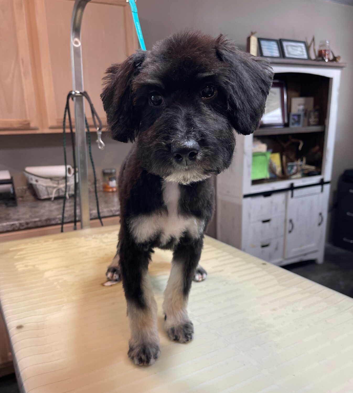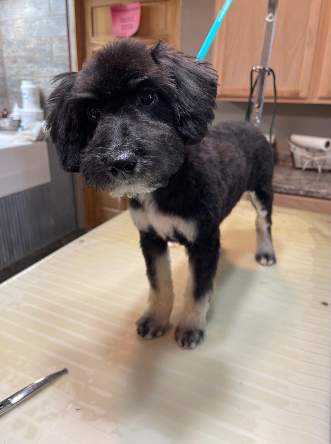 MSBLKTRIF3-Adorable black tri female! Her copper will be more vibrant as she matures. She has gotten her first big girl haircut too! These puppies come with a 2 year health guarantee, health record listing vaccines/dewormers, registration papers, and are examined by the vet and issued a health certificate before they leave. These babies are hypoallergenic and little to no shedding. They are bred with wonderful temperaments and are doggy door trained to potty outside so house training is a breeze! My 4 yr old son “helps” and plays with the puppies so they are exposed to children. If you are wanting one of these pups we sometimes make a delivery route to STL or 2 hours from the house depending on customer locations and amount of pups heading that direction so we can set up a meeting route with a small fee if that ends up working for everyone. We offer airline shipping or flight nanny just need to see on quotes and shipping time frame. We are a small family business as well as a state licensed and inspected kennel. Thank you so much for supporting us! Welcome to the Double R Family!