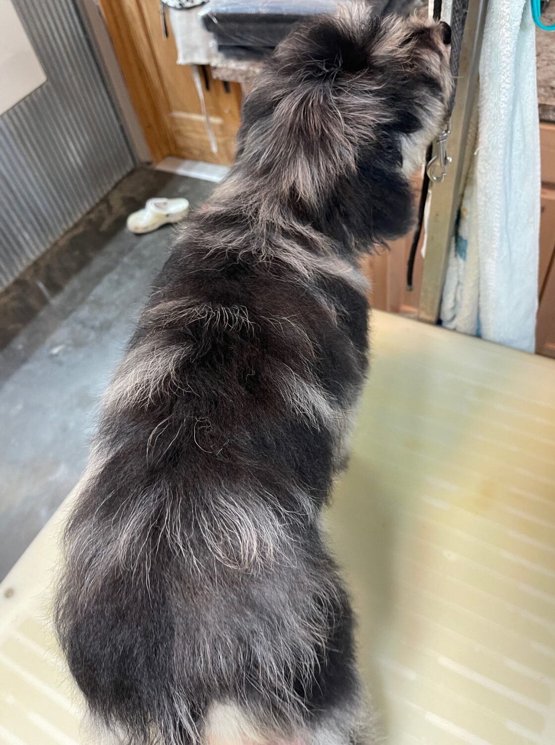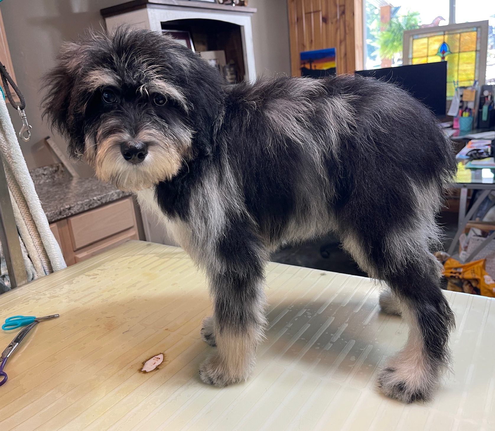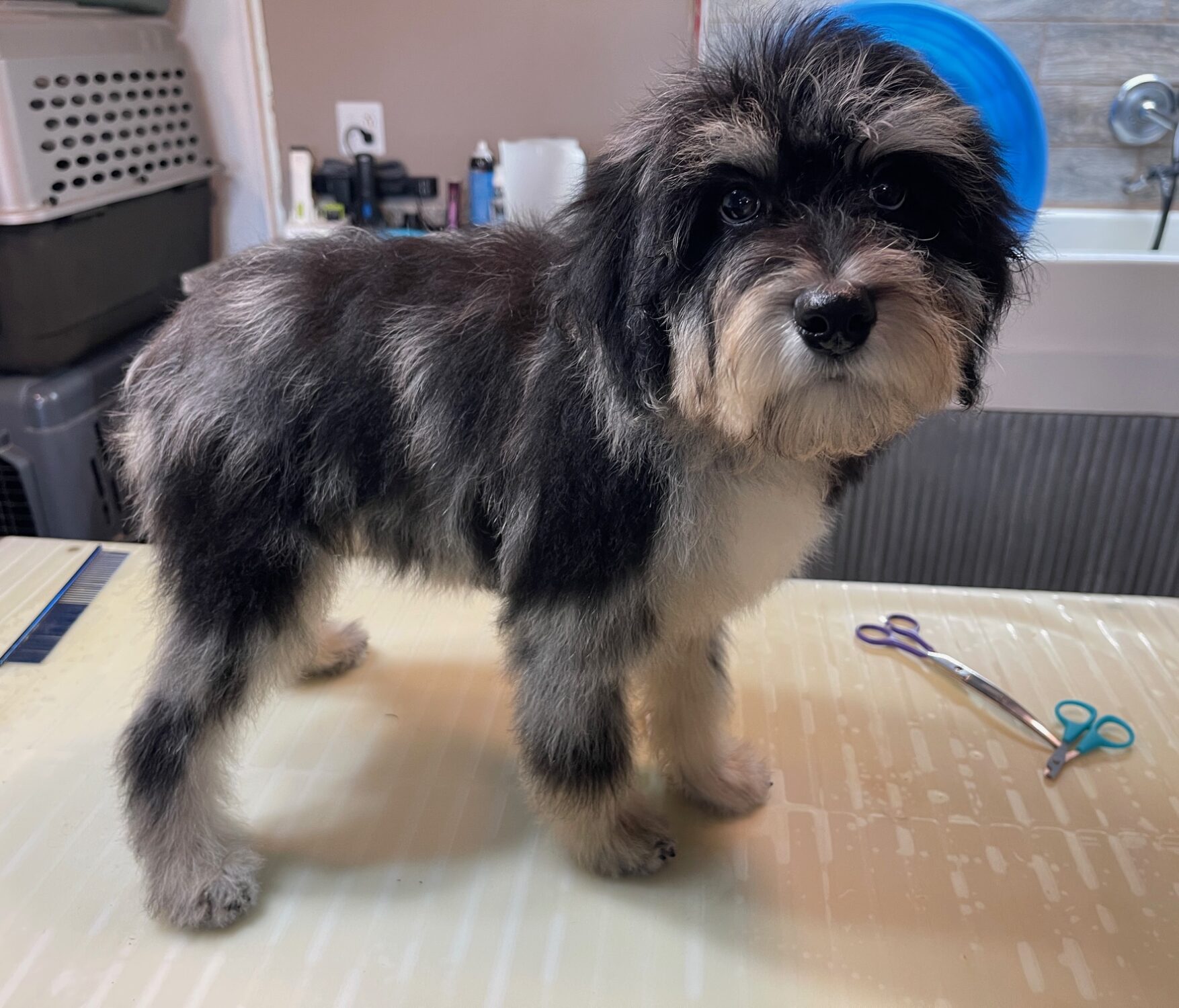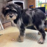 MSBLUMF8- Gorgeous blue merle female with copper! She has been bathed, fluffed and lightly trimmed. She was perfect for being groomed! These puppies come with a 2 year health guarantee, health record listing vaccines/dewormers, registration papers, and are examined by the vet and issued a health certificate before they leave. These babies are hypoallergenic and little to no shedding. They are bred with wonderful temperaments and are doggy door trained to potty outside so house training is a breeze! My 4 yr old son “helps” and plays with the puppies so they are exposed to children. If you are wanting one of these pups we sometimes make a delivery route to STL or 2 hours from the house depending on customer locations and amount of pups heading that direction so we can set up a meeting route with a small fee if that ends up working for everyone. We offer airline shipping or flight nanny just need to see on quotes and shipping time frame. We are a small family business as well as a state licensed and inspected kennel. Thank you so much for supporting us! Welcome to the Double R Family!