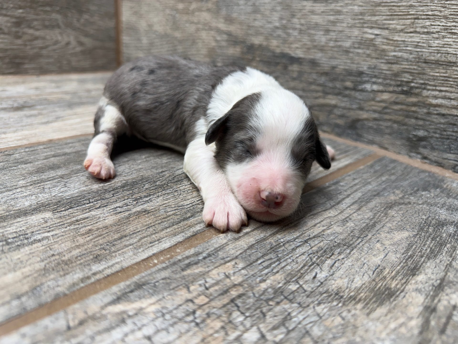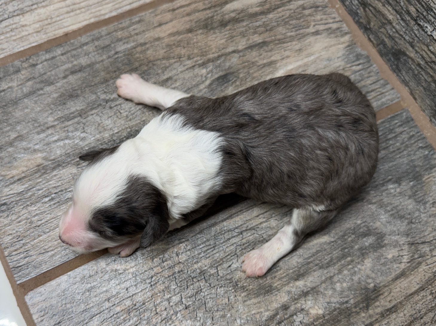 PNBLUMM3- stunning blue merle male with a full white collar!! These puppies come with a 2 year health guarantee, health record listing vaccines/dewormers, registration papers, and are examined by the vet and issued a health certificate before they leave. These babies are hypoallergenic and little to no shedding. They are bred with wonderful temperaments and are doggy door trained to potty outside so house training is a breeze! My 5 yr old son “helps” and plays with the puppies so they are exposed to children. If you are wanting one of these pups we sometimes make a delivery route to STL or 2 hours from the house depending on customer locations and amount of pups heading that direction so we can set up a meeting route with a small fee if that ends up working for everyone. We offer airline shipping or flight nanny just need to see on quotes and shipping time frame. We are a small family business as well as a state licensed and inspected kennel. Thank you so much for supporting us! Welcome to the Double R Family!