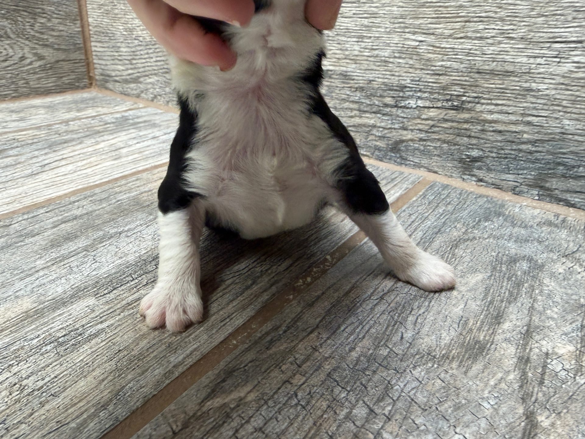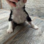 PNBLKWTUXM7- sharp black and white tuxedo male! Look at all of those perfect markings. These puppies come with a 2 year health guarantee, health record listing vaccines/dewormers, registration papers, and are examined by the vet and issued a health certificate before they leave. These babies are hypoallergenic and little to no shedding. They are bred with wonderful temperaments and are doggy door trained to potty outside so house training is a breeze! My 5 yr old son “helps” and plays with the puppies so they are exposed to children. If you are wanting one of these pups we sometimes make a delivery route to STL or 2 hours from the house depending on customer locations and amount of pups heading that direction so we can set up a meeting route with a small fee if that ends up working for everyone. We offer airline shipping or flight nanny just need to see on quotes and shipping time frame. We are a small family business as well as a state licensed and inspected kennel. Thank you so much for supporting us! Welcome to the Double R Family!
