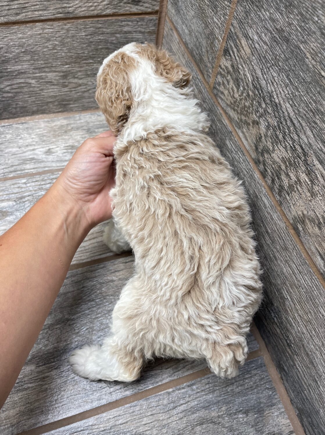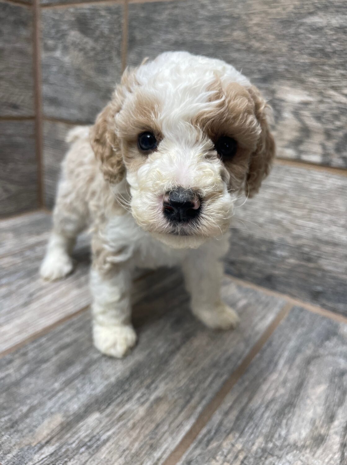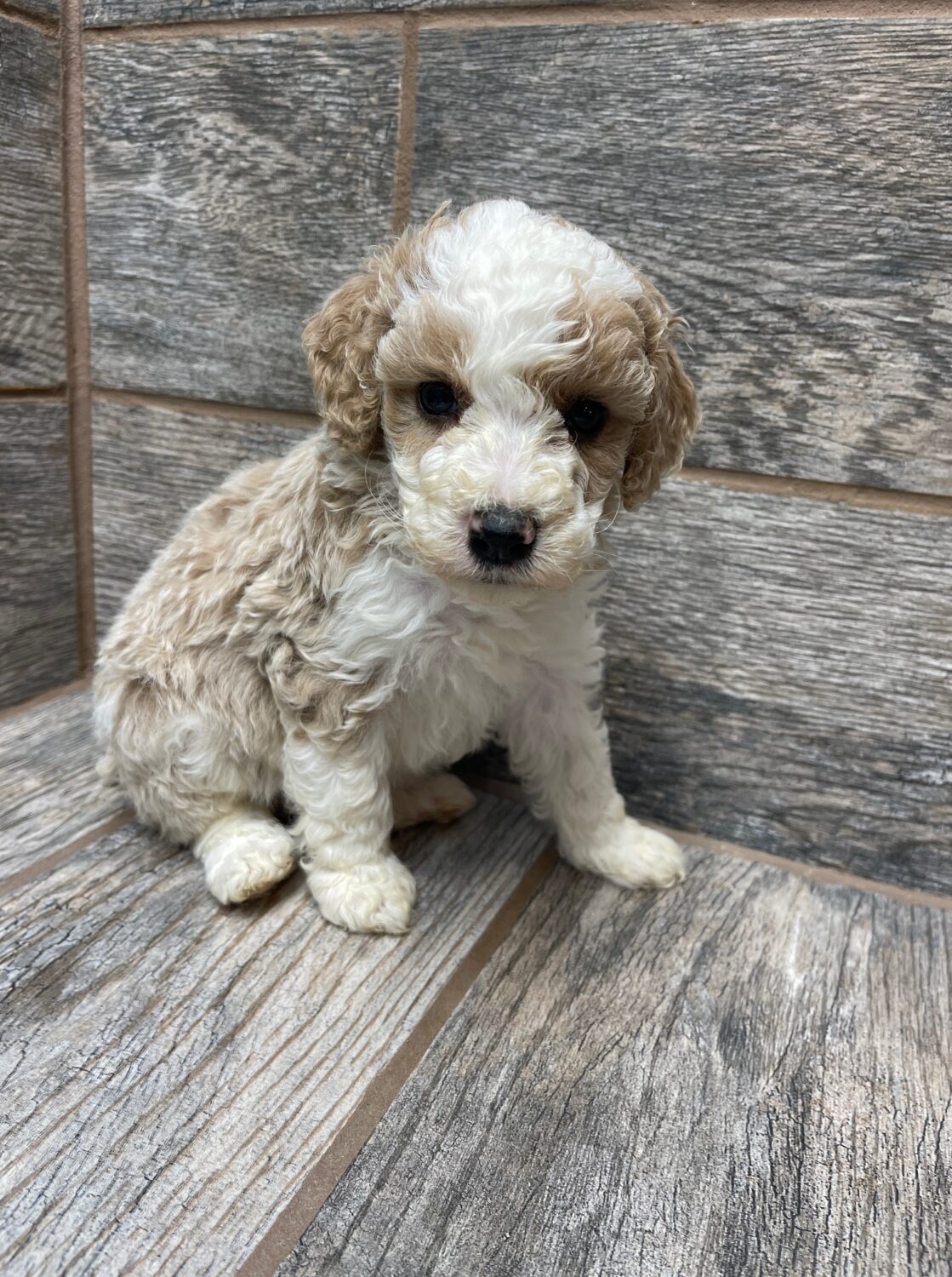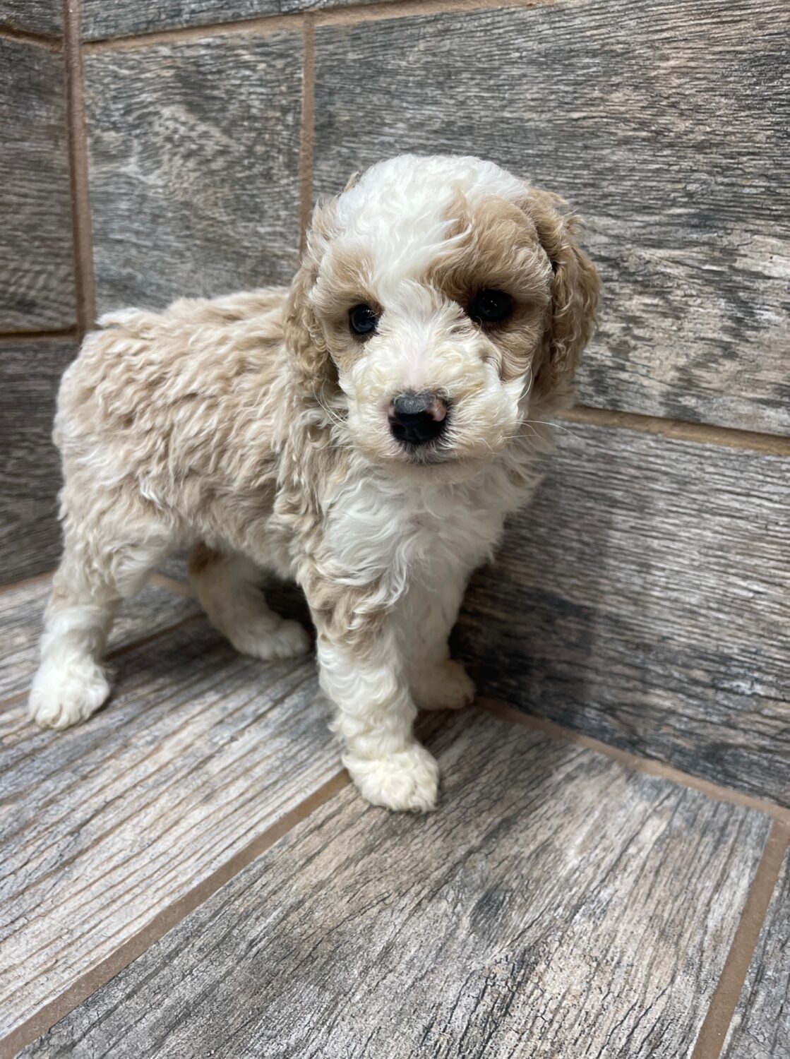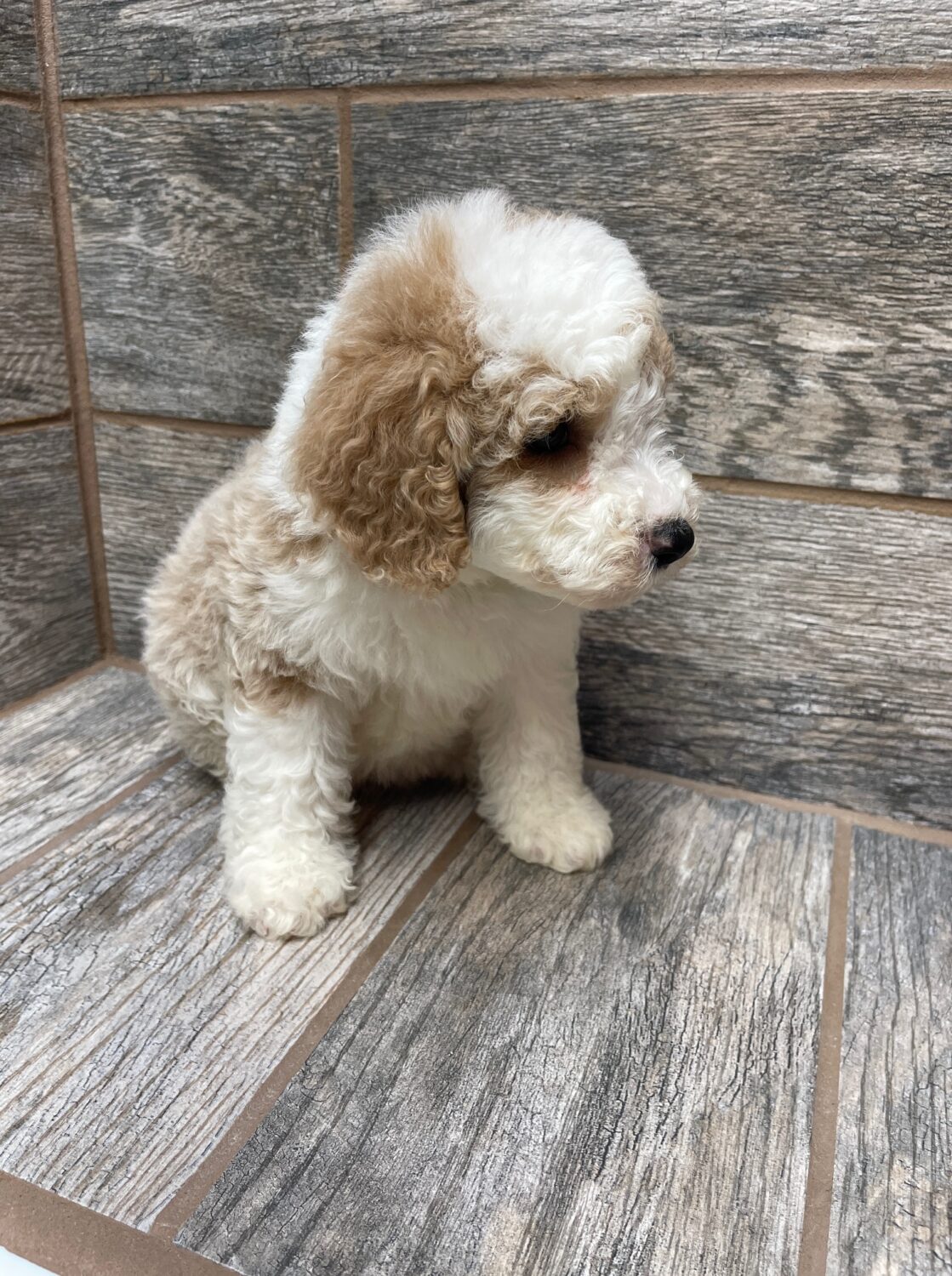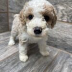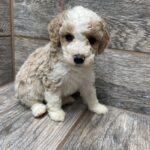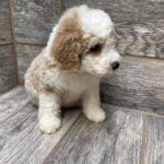 PNCRMWF6- she is a beautiful cream and white tuxedo! These puppies come with a 2 year health guarantee, health record listing vaccines/dewormers, registration papers, and are examined by the vet and issued a health certificate before they leave. These babies are hypoallergenic and little to no shedding. They are bred with wonderful temperaments and are doggy door trained to potty outside so house training is a breeze! My 4 yr old son “helps” and plays with the puppies so they are exposed to children. If you are wanting one of these pups we sometimes make a delivery route to STL or 2 hours from the house depending on customer locations and amount of pups heading that direction so we can set up a meeting route with a small fee if that ends up working for everyone. We offer airline shipping or flight nanny just need to see on quotes and shipping time frame. We are a small family business as well as a state licensed and inspected kennel. Thank you so much for supporting us! Welcome to the Double R Family!