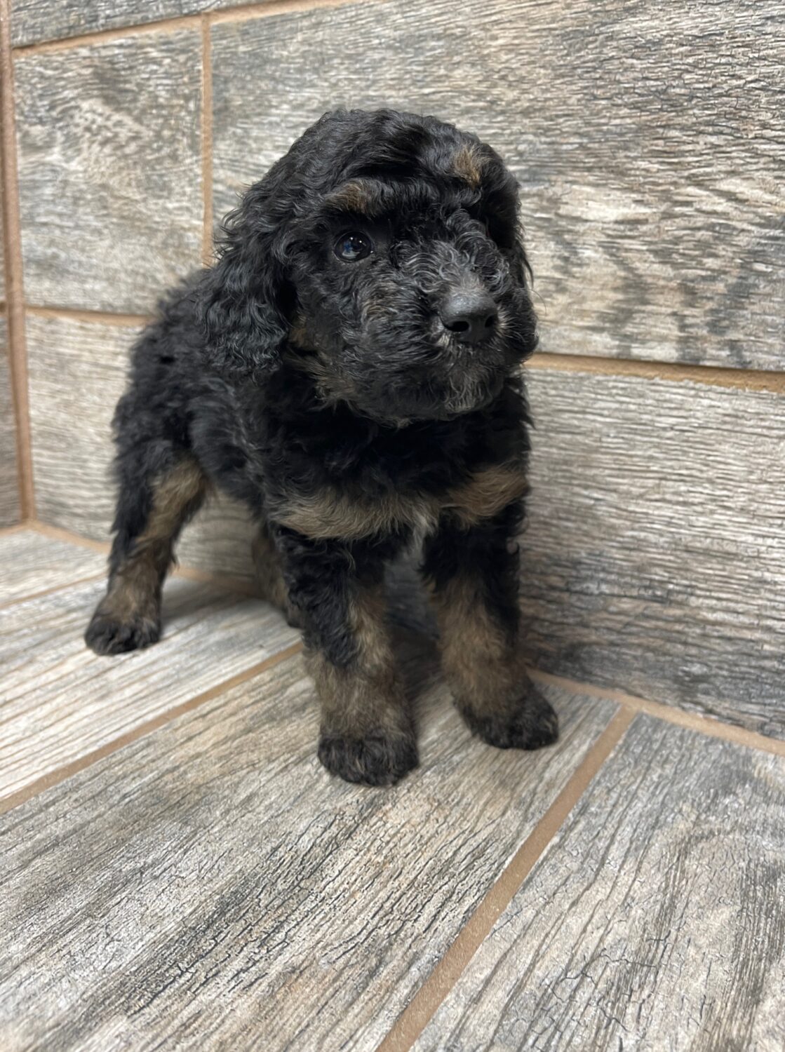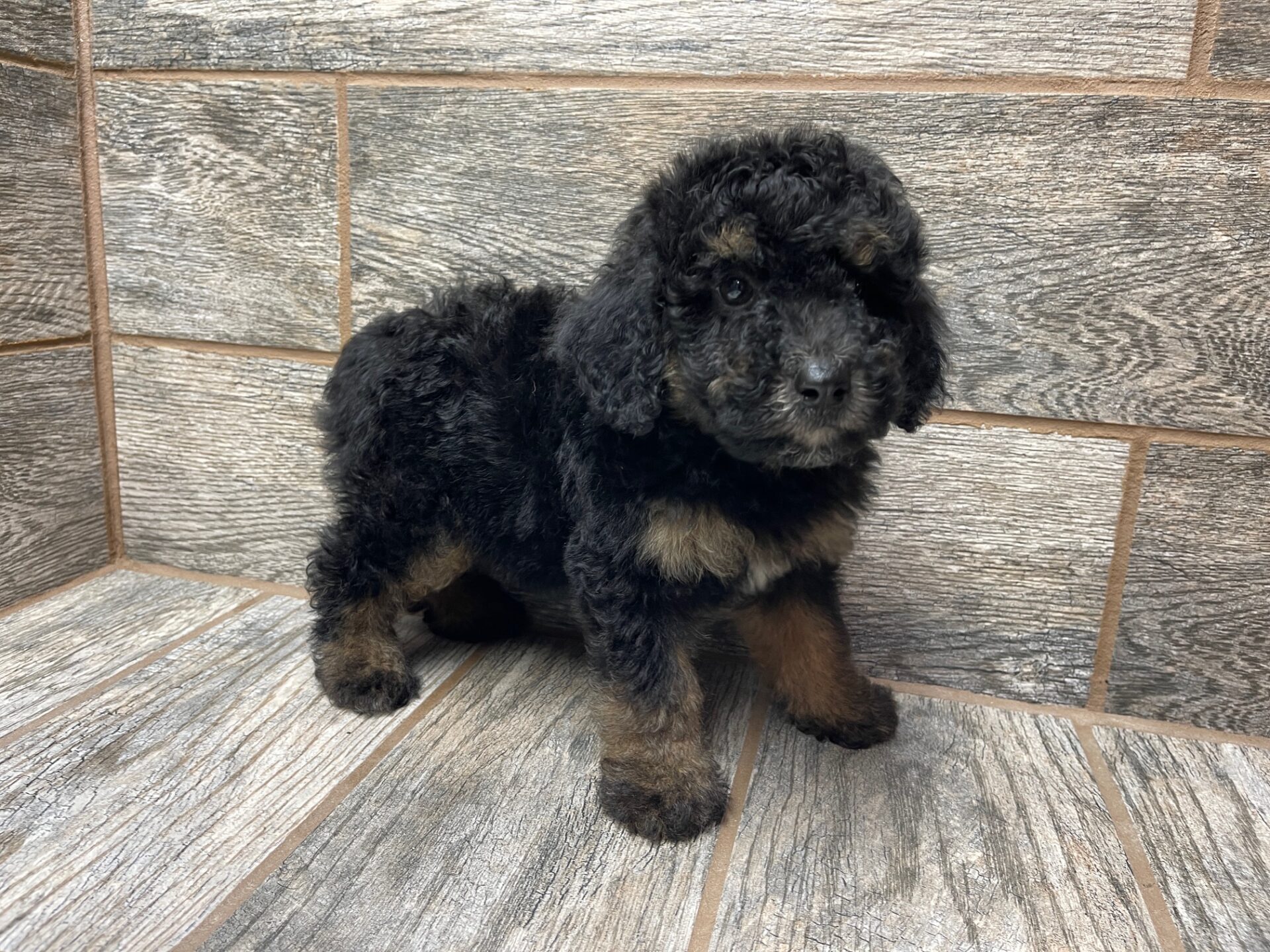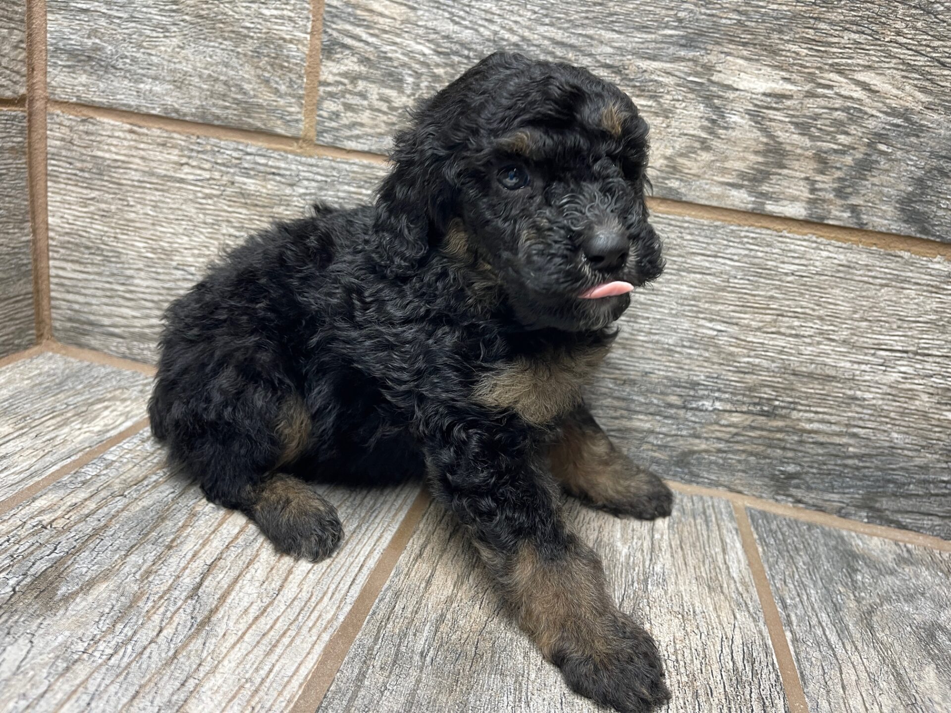 PNBLKTRIM1- handsome black tri male with vibrant copper! These puppies come with a 2 year health guarantee, health record listing vaccines/dewormers, registration papers, and are examined by the vet and issued a health certificate before they leave. These babies are hypoallergenic and little to no shedding. They are bred with wonderful temperaments and are doggy door trained to potty outside so house training is a breeze! My 4 yr old son “helps” and plays with the puppies so they are exposed to children. If you are wanting one of these pups we sometimes make a delivery route to STL or 2 hours from the house depending on customer locations and amount of pups heading that direction so we can set up a meeting route with a small fee if that ends up working for everyone. We offer airline shipping or flight nanny just need to see on quotes and shipping time frame. We are a small family business as well as a state licensed and inspected kennel. Thank you so much for supporting us! Welcome to the Double R Family!