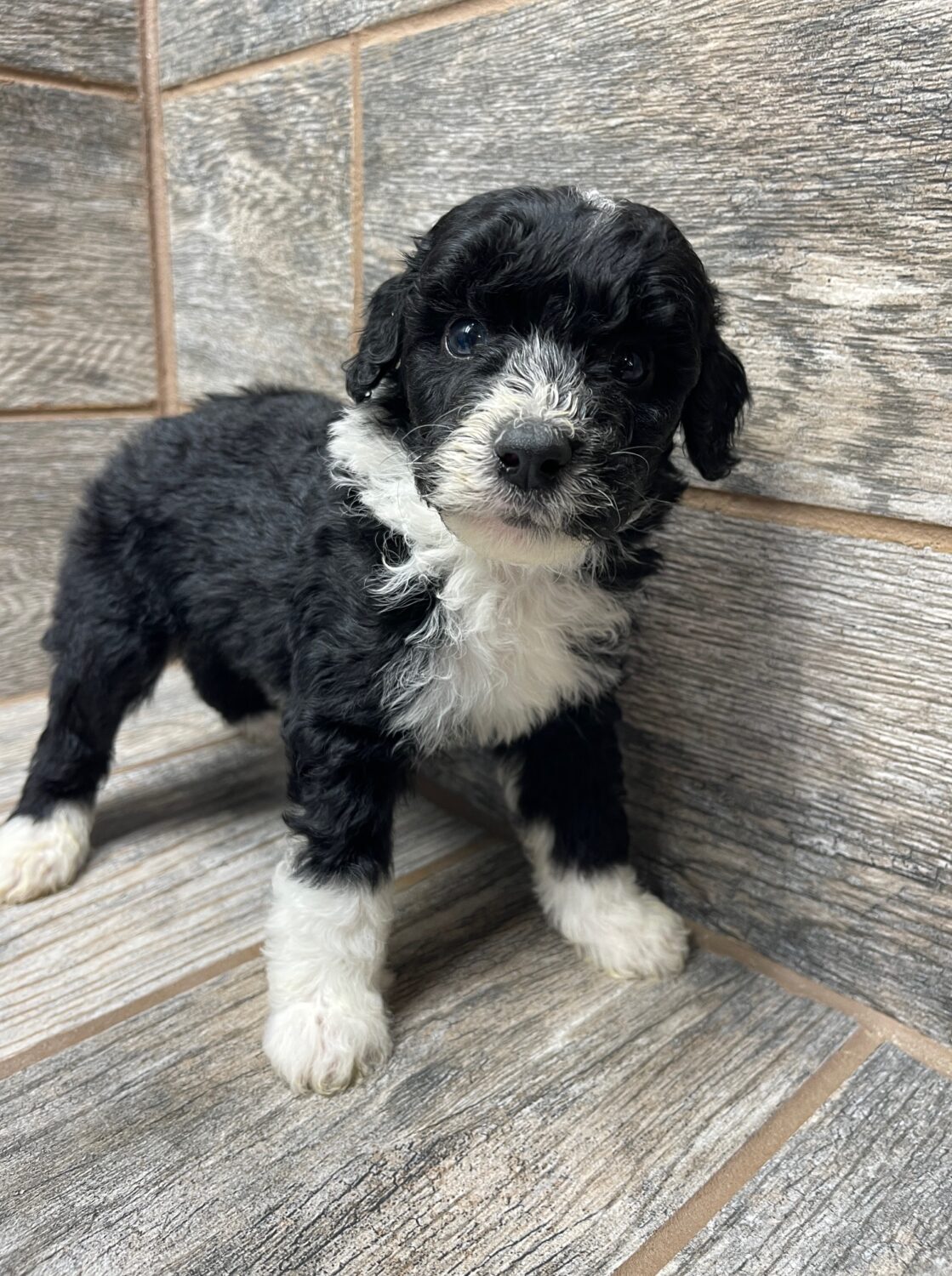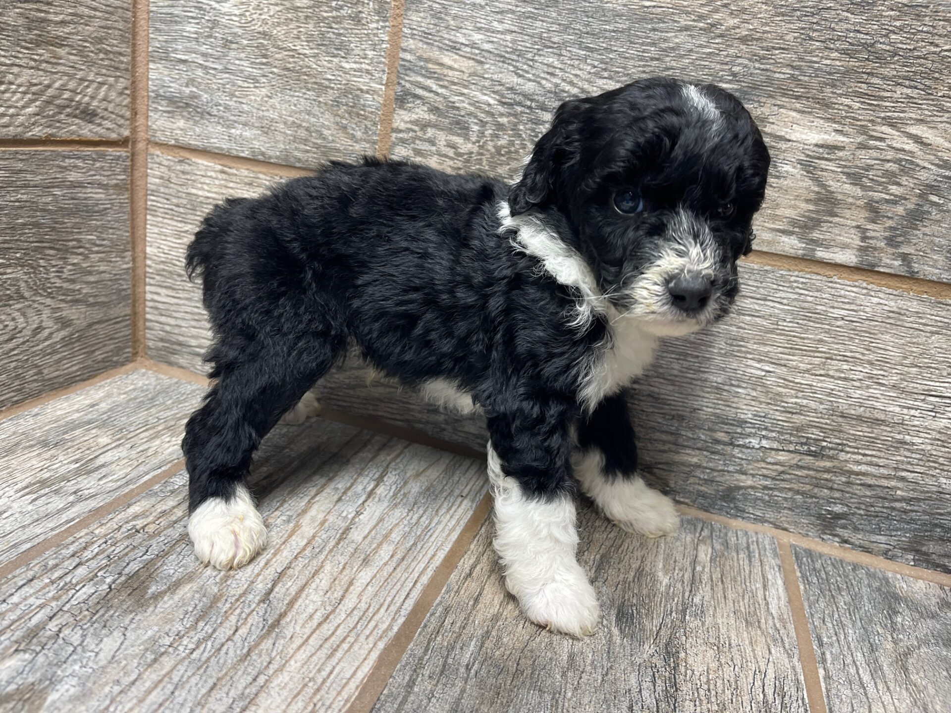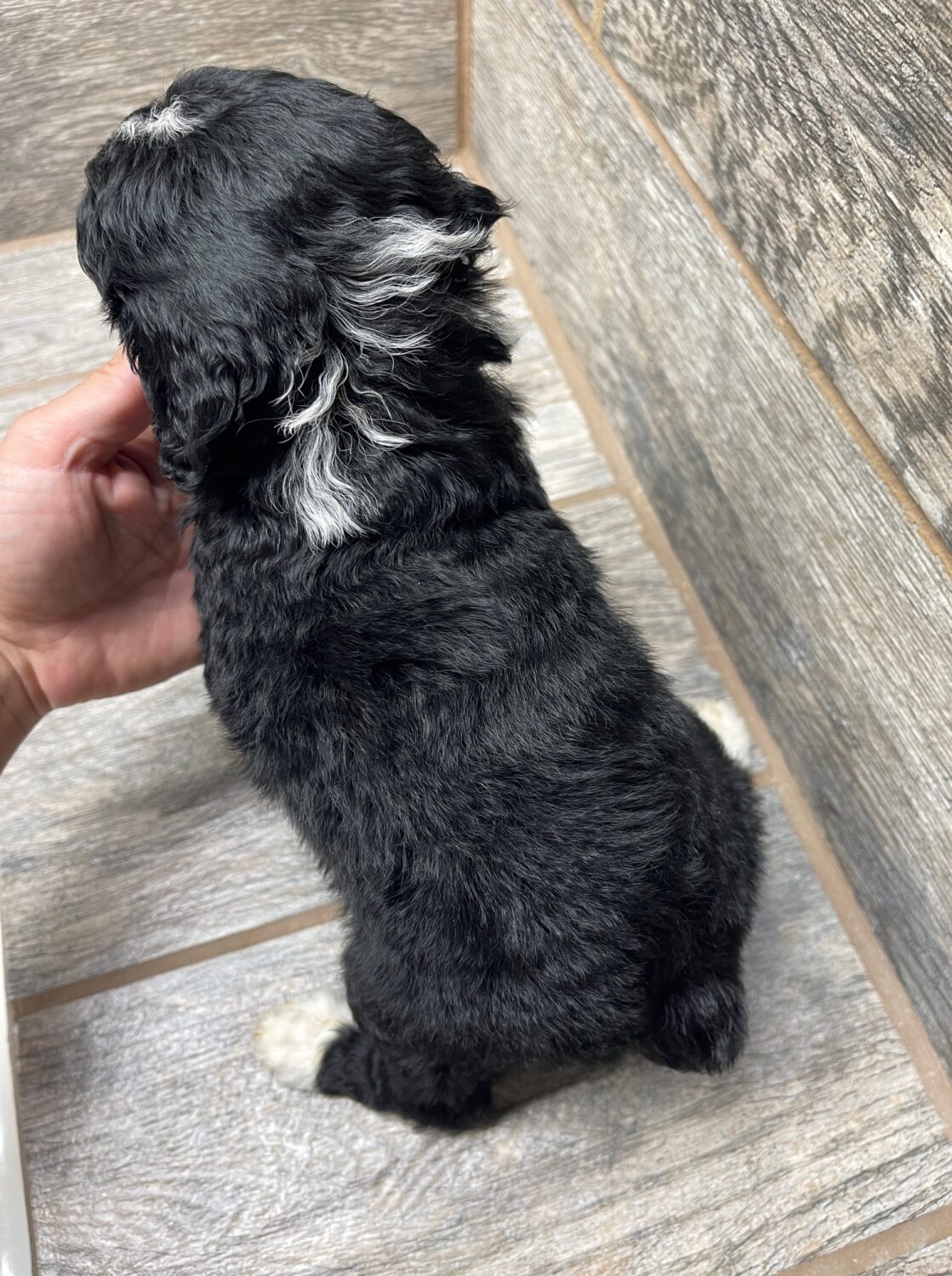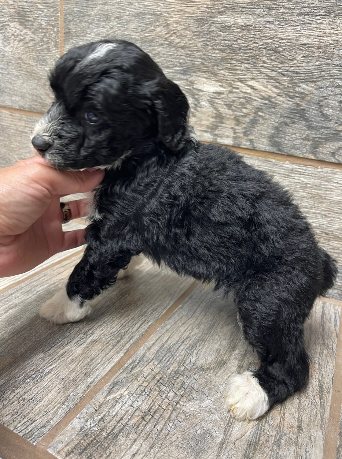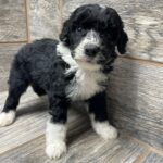 PNBLKTRIM2-stunning black tri male with vibrant copper and a big white chest/boots! These puppies come with a 2 year health guarantee, health record listing vaccines/dewormers, registration papers, and are examined by the vet and issued a health certificate before they leave. These babies are hypoallergenic and little to no shedding. They are bred with wonderful temperaments and are doggy door trained to potty outside so house training is a breeze! My 4 yr old son “helps” and plays with the puppies so they are exposed to children. If you are wanting one of these pups we sometimes make a delivery route to STL or 2 hours from the house depending on customer locations and amount of pups heading that direction so we can set up a meeting route with a small fee if that ends up working for everyone. We offer airline shipping or flight nanny just need to see on quotes and shipping time frame. We are a small family business as well as a state licensed and inspected kennel. Thank you so much for supporting us! Welcome to the Double R Family!