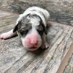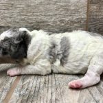 RGBLUMPM2 Bold and beautiful is how to describe this handsome blue merle Parti male.  He has enough merle markings to make him stand out.  It’s entirely possible he could have blue eyes!  We expect this litter to mature between 15 to 17 inches, weighing 20 to 30 pounds.  Both Remme and Gator have wonderful laid back personalities, with gentle natures…these puppies will be AWESOME!