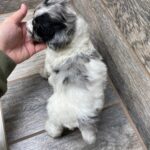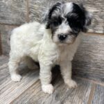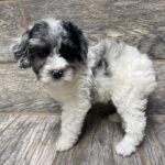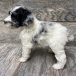 SMBLUMPF1- Sweet little blue merle parti female! These puppies come with a 2 year health guarantee, health record listing vaccines/dewormers, registration papers, and are examined by the vet and issued a health certificate before they leave. These babies are hypoallergenic and little to no shedding. They are bred with wonderful temperaments and are doggy door trained to potty outside so house training is a breeze! My 4 yr old son “helps” and plays with the puppies so they are exposed to children. If you are wanting one of these pups we sometimes make a delivery route to STL or 2 hours from the house depending on customer locations and amount of pups heading that direction so we can set up a meeting route with a small fee if that ends up working for everyone. We offer airline shipping or flight nanny just need to see on quotes and shipping time frame. We are a small family business as well as a state licensed and inspected kennel. Thank you so much for supporting us! Welcome to the Double R Family!