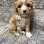 TMAPRTUXM3- handsome apricot tuxedo male! These puppies come with a 2 year health guarantee, health record listing vaccines/dewormers, and are examined by the vet and issued a health certificate before they leave. These babies are hypoallergenic and little to no shedding. They are bred with wonderful temperaments and are doggy door trained to potty outside so house training is a breeze! My 4 yr old son “helps” and plays with the puppies so they are exposed to children. If you are wanting one of these pups we sometimes make a delivery route to STL or 2 hours from the house depending on customer locations and amount of pups heading that direction so we can set up a meeting route with a small fee if that ends up working for everyone. We offer airline shipping or flight nanny just need to see on quotes and shipping time frame. We are a small family business as well as a state licensed and inspected kennel. Thank you so much for supporting us! Welcome to the Double R Family!