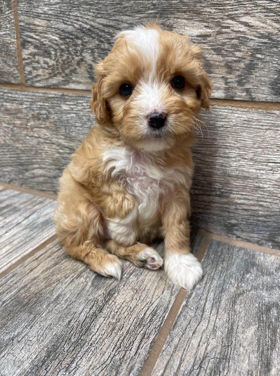 TMAPRTUXM3- handsome apricot tuxedo male! These puppies come with a 2 year health guarantee, health record listing vaccines/dewormers, and are examined by the vet and issued a health certificate before they leave. These babies are hypoallergenic and little to no shedding. They are bred with wonderful temperaments and are doggy door trained to potty outside so house training is a breeze! My 4 yr old son “helps” and plays with the puppies so they are exposed to children. If you are wanting one of these pups we sometimes make a delivery route to STL or 2 hours from the house depending on customer locations and amount of pups heading that direction so we can set up a meeting route with a small fee if that ends up working for everyone. We offer airline shipping or flight nanny just need to see on quotes and shipping time frame. We are a small family business as well as a state licensed and inspected kennel. Thank you so much for supporting us! Welcome to the Double R Family!