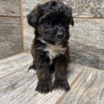 TMBRM4-Stunning brindle male with vibrant copper. These puppies come with a 2 year health guarantee, health record listing vaccines/dewormers, and are examined by the vet and issued a health certificate before they leave. These babies are hypoallergenic and little to no shedding. They are bred with wonderful temperaments and are doggy door trained to potty outside so house training is a breeze! My 4 yr old son “helps” and plays with the puppies so they are exposed to children. If you are wanting one of these pups we sometimes make a delivery route to STL or 2 hours from the house depending on customer locations and amount of pups heading that direction so we can set up a meeting route with a small fee if that ends up working for everyone. We offer airline shipping or flight nanny just need to see on quotes and shipping time frame. We are a small family business as well as a state licensed and inspected kennel. Thank you so much for supporting us! Welcome to the Double R Family!