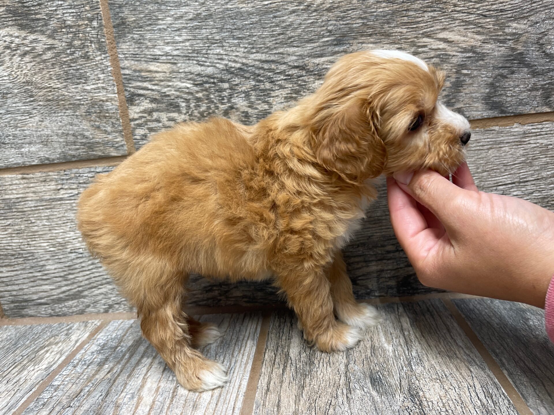 TMAPRTUXM5- stunning dark apricot tuxedo male! He is just picture perfect. These puppies come with a 2 year health guarantee, health record listing vaccines/dewormers, and are examined by the vet and issued a health certificate before they leave. These babies are hypoallergenic and little to no shedding. They are bred with wonderful temperaments and are doggy door trained to potty outside so house training is a breeze! My 4 yr old son “helps” and plays with the puppies so they are exposed to children. If you are wanting one of these pups we sometimes make a delivery route to STL or 2 hours from the house depending on customer locations and amount of pups heading that direction so we can set up a meeting route with a small fee if that ends up working for everyone. We offer airline shipping or flight nanny just need to see on quotes and shipping time frame. We are a small family business as well as a state licensed and inspected kennel. Thank you so much for supporting us! Welcome to the Double R Family!