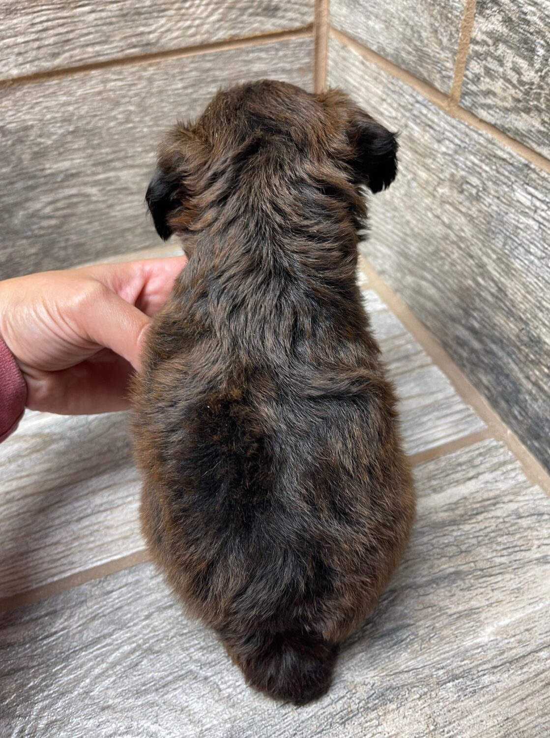 TMBRM4-Stunning brindle male with vibrant copper. These puppies come with a 2 year health guarantee, health record listing vaccines/dewormers, and are examined by the vet and issued a health certificate before they leave. These babies are hypoallergenic and little to no shedding. They are bred with wonderful temperaments and are doggy door trained to potty outside so house training is a breeze! My 4 yr old son “helps” and plays with the puppies so they are exposed to children. If you are wanting one of these pups we sometimes make a delivery route to STL or 2 hours from the house depending on customer locations and amount of pups heading that direction so we can set up a meeting route with a small fee if that ends up working for everyone. We offer airline shipping or flight nanny just need to see on quotes and shipping time frame. We are a small family business as well as a state licensed and inspected kennel. Thank you so much for supporting us! Welcome to the Double R Family!