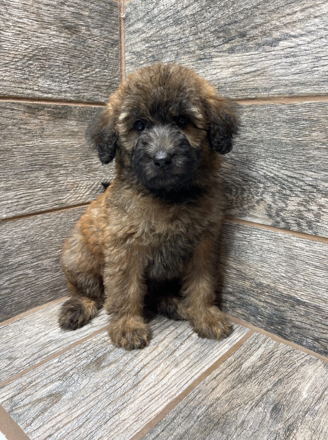 WBBRF5- Beautiful brindle female! These puppies come with a 2 year health guarantee, health record listing vaccines/dewormers, registration papers, and are examined by the vet and issued a health certificate before they leave. These babies are hypoallergenic and little to no shedding. They are bred with wonderful temperaments and are doggy door trained to potty outside so house training is a breeze! My 4 yr old son “helps” and plays with the puppies so they are exposed to children. If you are wanting one of these pups we sometimes make a delivery route to STL or 2 hours from the house depending on customer locations and amount of pups heading that direction so we can set up a meeting route with a small fee if that ends up working for everyone. We offer airline shipping or flight nanny just need to see on quotes and shipping time frame. We are a small family business as well as a state licensed and inspected kennel. Thank you so much for supporting us! Welcome to the Double R Family!