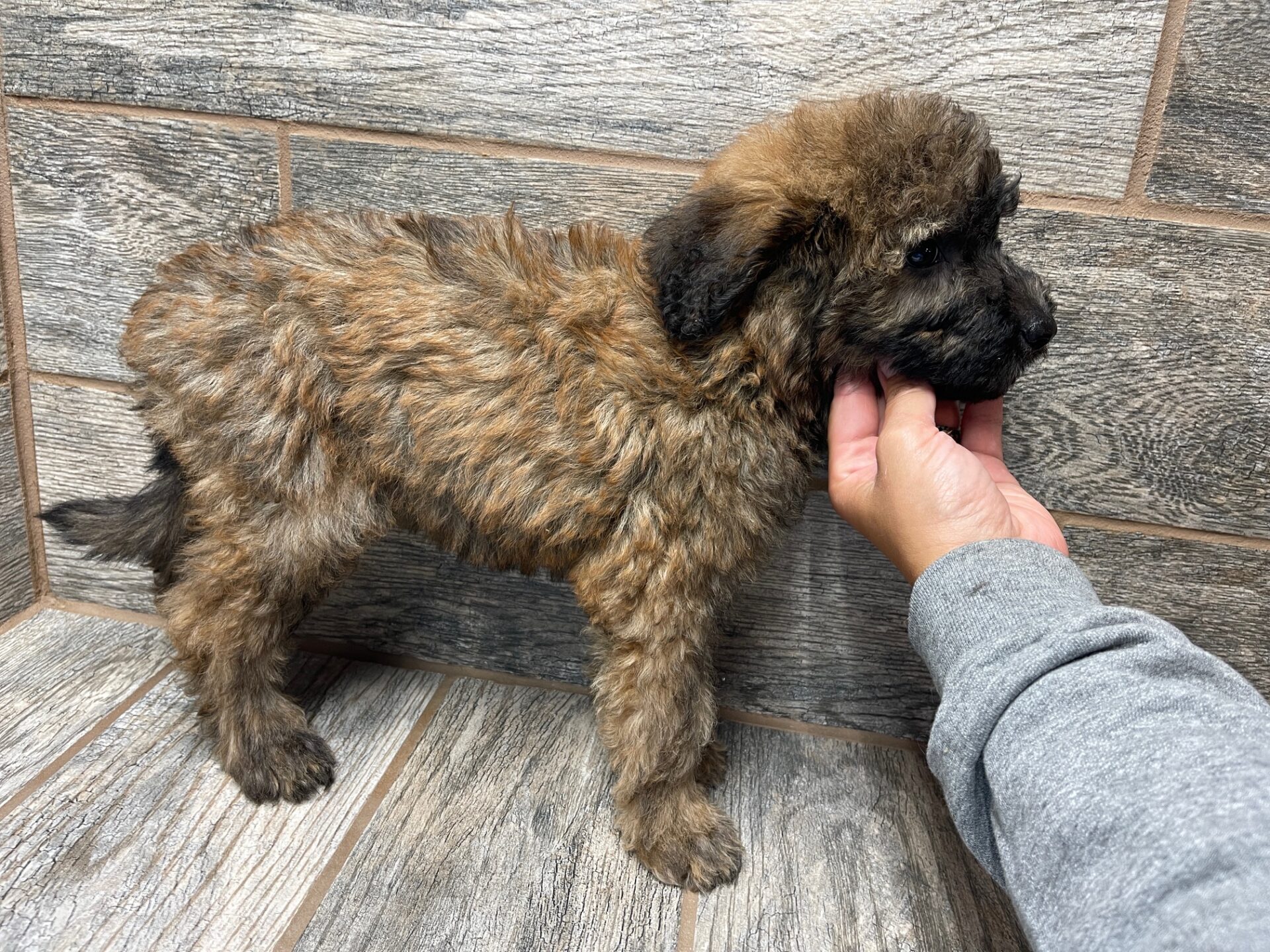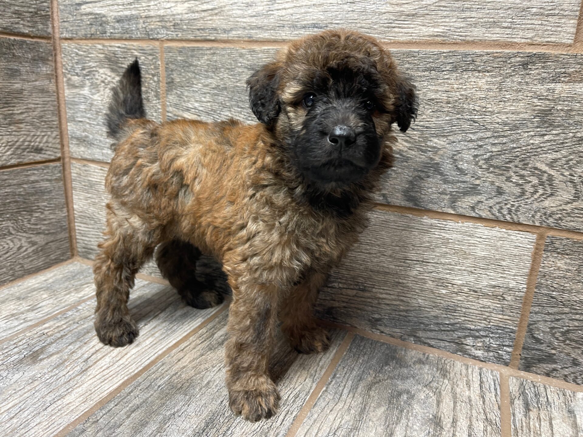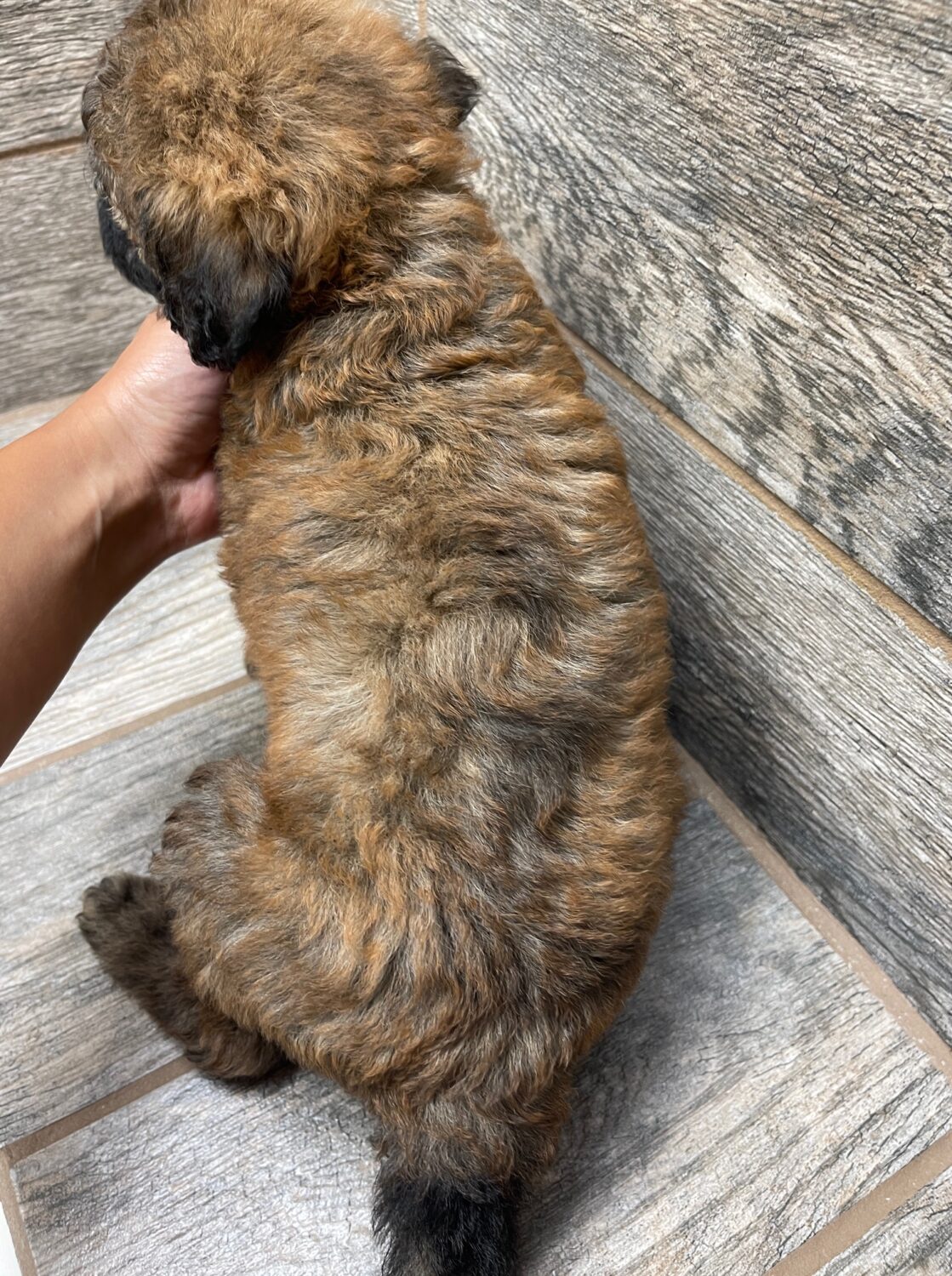 WBBRF5- Beautiful brindle female! These puppies come with a 2 year health guarantee, health record listing vaccines/dewormers, registration papers, and are examined by the vet and issued a health certificate before they leave. These babies are hypoallergenic and little to no shedding. They are bred with wonderful temperaments and are doggy door trained to potty outside so house training is a breeze! My 4 yr old son “helps” and plays with the puppies so they are exposed to children. If you are wanting one of these pups we sometimes make a delivery route to STL or 2 hours from the house depending on customer locations and amount of pups heading that direction so we can set up a meeting route with a small fee if that ends up working for everyone. We offer airline shipping or flight nanny just need to see on quotes and shipping time frame. We are a small family business as well as a state licensed and inspected kennel. Thank you so much for supporting us! Welcome to the Double R Family!