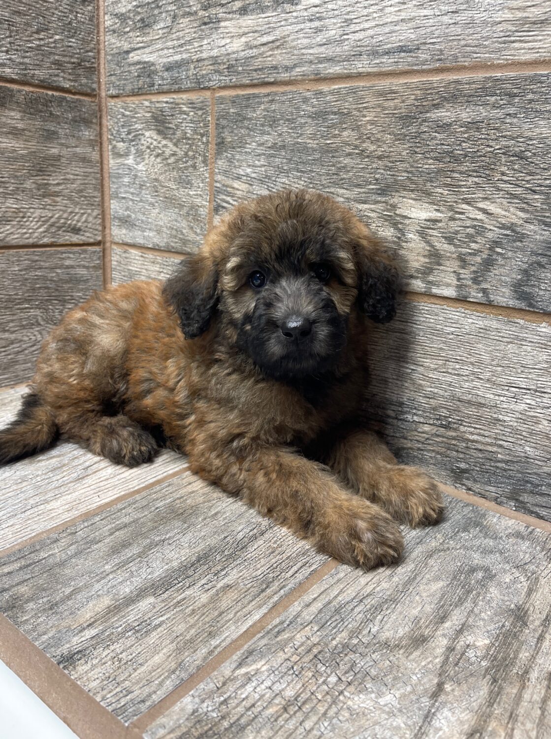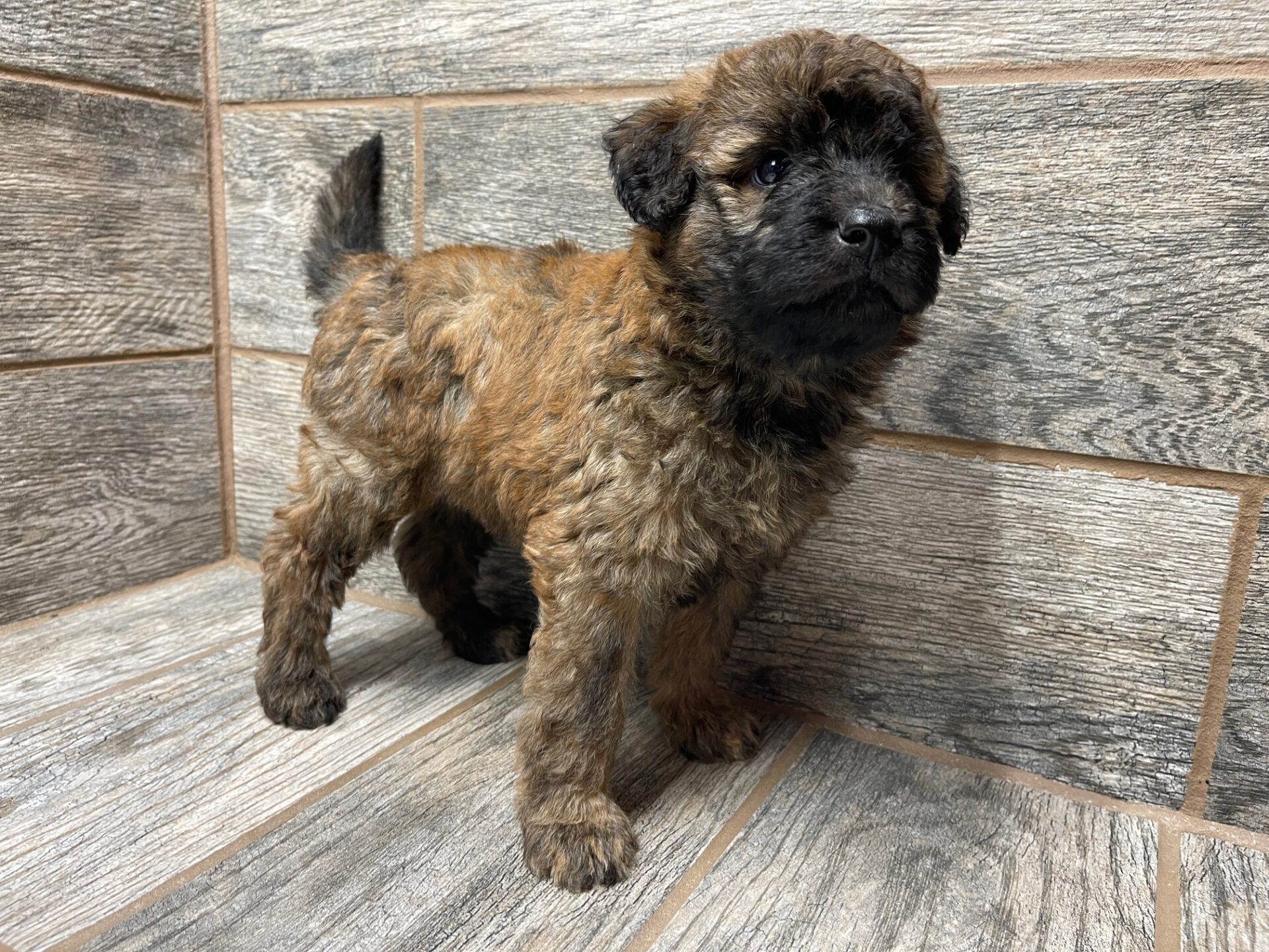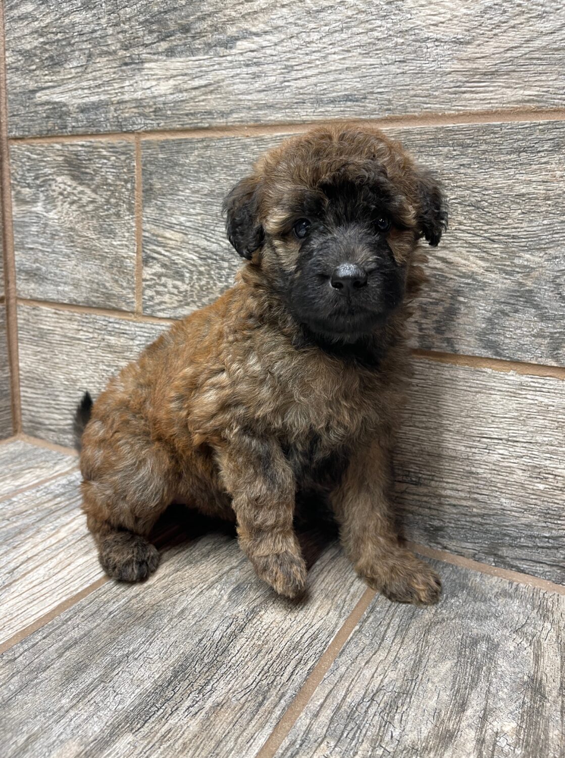 WBBRF5- Beautiful brindle female! These puppies come with a 2 year health guarantee, health record listing vaccines/dewormers, registration papers, and are examined by the vet and issued a health certificate before they leave. These babies are hypoallergenic and little to no shedding. They are bred with wonderful temperaments and are doggy door trained to potty outside so house training is a breeze! My 4 yr old son “helps” and plays with the puppies so they are exposed to children. If you are wanting one of these pups we sometimes make a delivery route to STL or 2 hours from the house depending on customer locations and amount of pups heading that direction so we can set up a meeting route with a small fee if that ends up working for everyone. We offer airline shipping or flight nanny just need to see on quotes and shipping time frame. We are a small family business as well as a state licensed and inspected kennel. Thank you so much for supporting us! Welcome to the Double R Family!