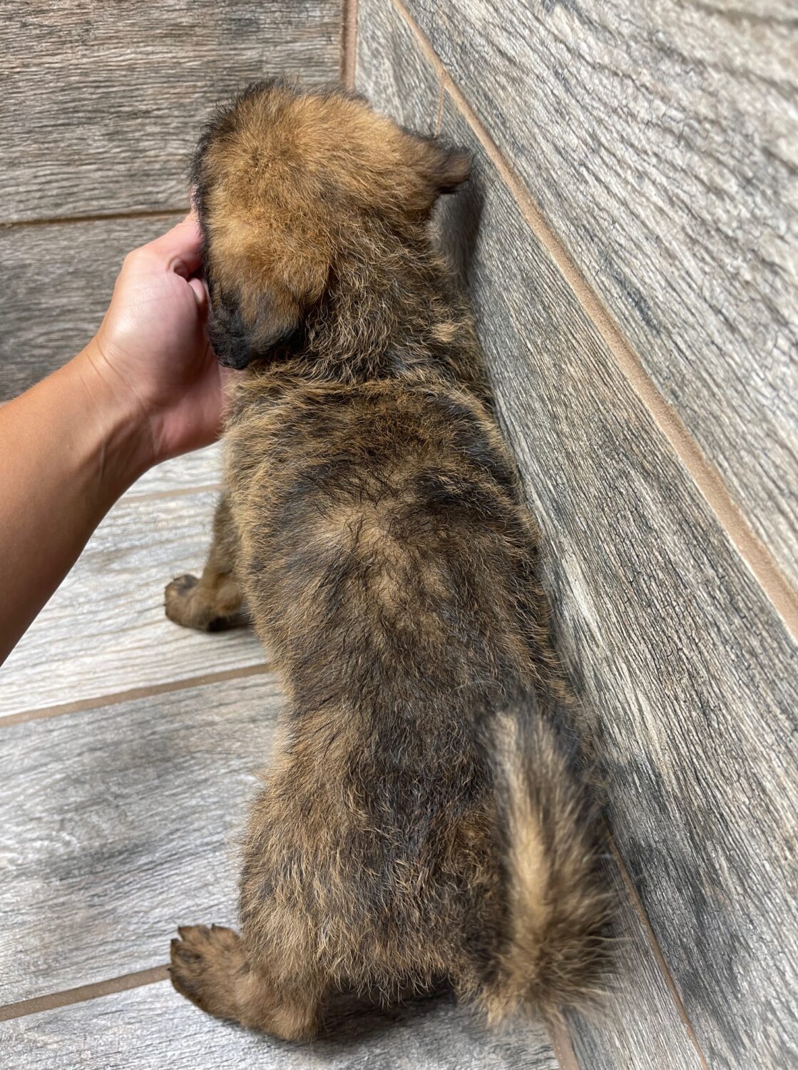 WBBRNDLF3- stunning brindle female! These puppies come with a 2 year health guarantee, health record listing vaccines/dewormers, registration papers, and are examined by the vet and issued a health certificate before they leave. These babies are hypoallergenic and little to no shedding. They are bred with wonderful temperaments and are doggy door trained to potty outside so house training is a breeze! My 4 yr old son “helps” and plays with the puppies so they are exposed to children. If you are wanting one of these pups we sometimes make a delivery route to STL or 2 hours from the house depending on customer locations and amount of pups heading that direction so we can set up a meeting route with a small fee if that ends up working for everyone. We offer airline shipping or flight nanny just need to see on quotes and shipping time frame. We are a small family business as well as a state licensed and inspected kennel. Thank you so much for supporting us! Welcome to the Double R Family!