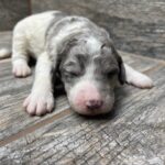 DTBLUMPF3- beautiful blue merle parti female! These puppies come with a 2 year health guarantee, health record listing vaccines/dewormers, and are examined by the vet and issued a health certificate before they leave. These babies are hypoallergenic and little to no shedding. They are bred with wonderful temperaments and are doggy door trained to potty […]
