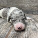 DTBLUMPF2- pretty blue merle parti female! These puppies come with a 2 year health guarantee, health record listing vaccines/dewormers, and are examined by the vet and issued a health certificate before they leave. These babies are hypoallergenic and little to no shedding. They are bred with wonderful temperaments and are doggy door trained to potty […]